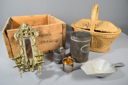 Trälåda: Höjd 16cm Bredd 36cm Djup 31cm. Bruksslitage.