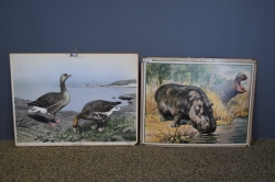 Ca 70x89cm och 73x95cm. En defekt vid upphänging. Slitage.