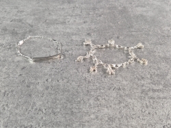 Silverarmband: Vikt ca 18,6g. Längd: ca 19cm. Stålarmband: Längd: ca 21,5cm. Graverad.
