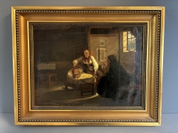 Olja på duk, osignerad kopia efter Adolph Tidemand, Spågumma på besök hos dalkulla.