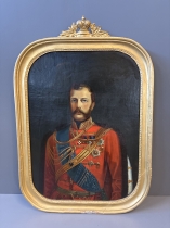 Vackert porträtt av Oscar I. Åldersslitage, krackelering samt skador. Bildmått: 60cm x 73cm.