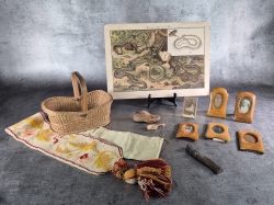 Största: Höjd 32cm Bredd 30cm. Slitage.