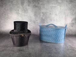 Spånkorg: Höjd 27cm Bredd 55cm. Bruksslitage.