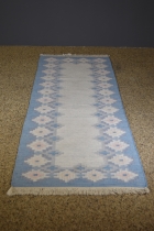 Ca 210x136cm. Defekta fransar. Bruksslitage.