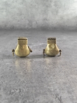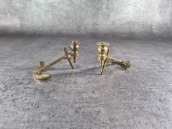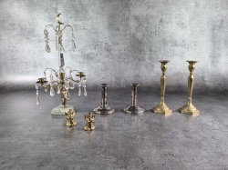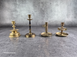 Mässingsljusstakar: Höjd 24cm. Bruksslitage. Ljusstake med prismor, defekt.