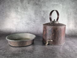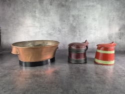 Kopparbalja: Höjd 19cm Bredd 45cm Djup 39cm. Bruksslitage.