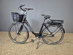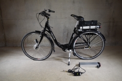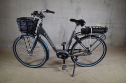 Målad på ramnumret. Defekt vid batteri-lås/batteri. Laddare och nyckel till batteriet finns ej. Märken.