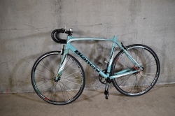 Saknar sadel. En fottrampa trasig.