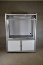 Höjd 199cm Bredd 150cm Djup 95cm. Metall/plexiglas.