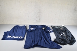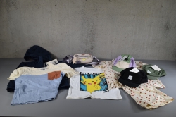 Jacka strl 130. Pyjamas strl 146/152. T-shirts strl 122/128. Kepsar 50/52, 54/56.