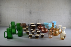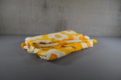 Virkat överkast med mönster i vitt, gult och orange. Mått: Ca 230x230cm.