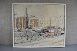Motiv: Torrdockan, Motala Verkstad i vinterskrud Ramyttermått: Ca 56x67cm.