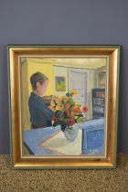 Höjd ca 171,5cm Bredd ca 116cm. Slitage.