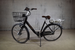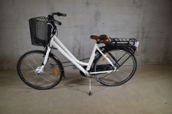 Defekta däck. Bucklig korg. Märken, repor och skav finns.