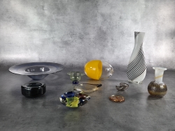 Högsta vasen: ca 26cm. En fisk, defekt.