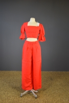 Topp, strl 36. Lapp kvar. Byxor, strl 38. Oanvända.