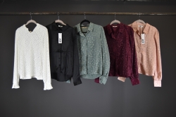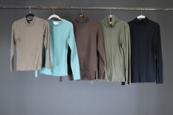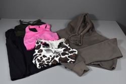 Tröja strl M. Toppar strl S. Sminkrester, annars bättre begagnat skick.