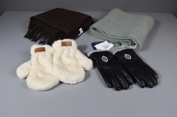 Sjal, Tiger of sweden. Lapp kvar. Brun sjal, knappt använd. 2par vantar/handskar, som oanvända.
