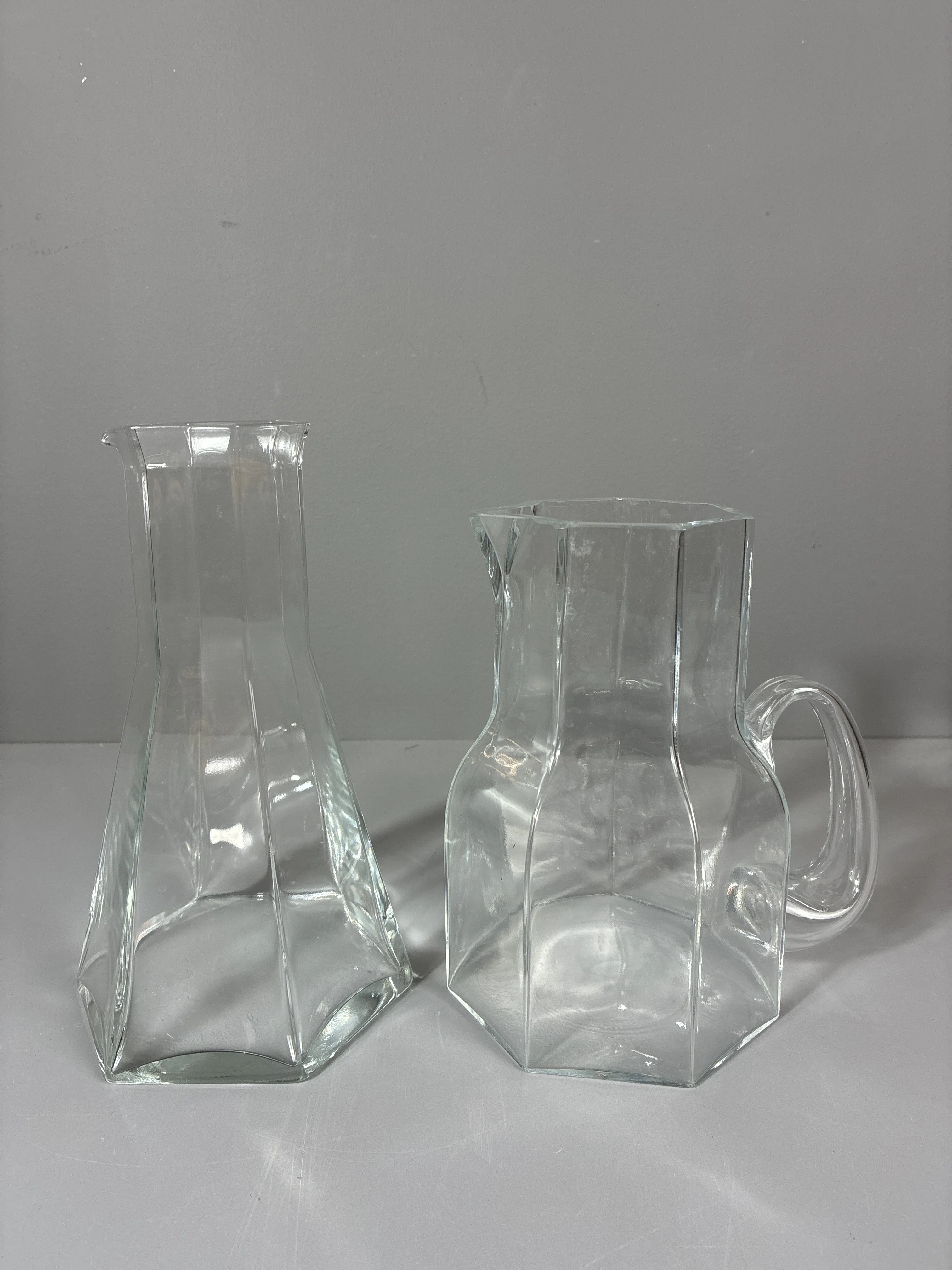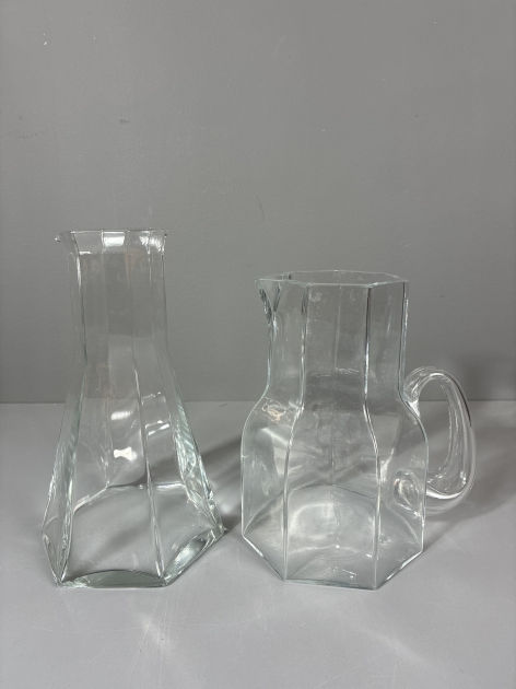 Karaff och tillbringare, Kosta Boda, fasetterad form. Höjd: 23cm samt 20cm.