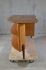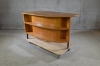 65. Skrivbord, 1950-tal, något svängd form med rundat hörn, fanerat i teak, 4st lådor, svärtade ben. 74x129x67cm