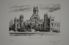 99. Grafik, " Plaza de Cibeles" Madrid, Spanien, Grabado original. 30x35cm.