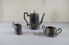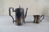 101. 2st kaffekannor och 2 gräddkannor i tenn och mässing