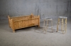 320. 2st piedestaler i rotting, 1st flätad tvättkorg.