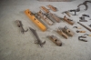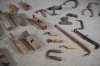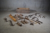 376. 9st äldre hyvlar. 3st timmersax, 2st yxhuvuden och diverse blandade äldre redskap.