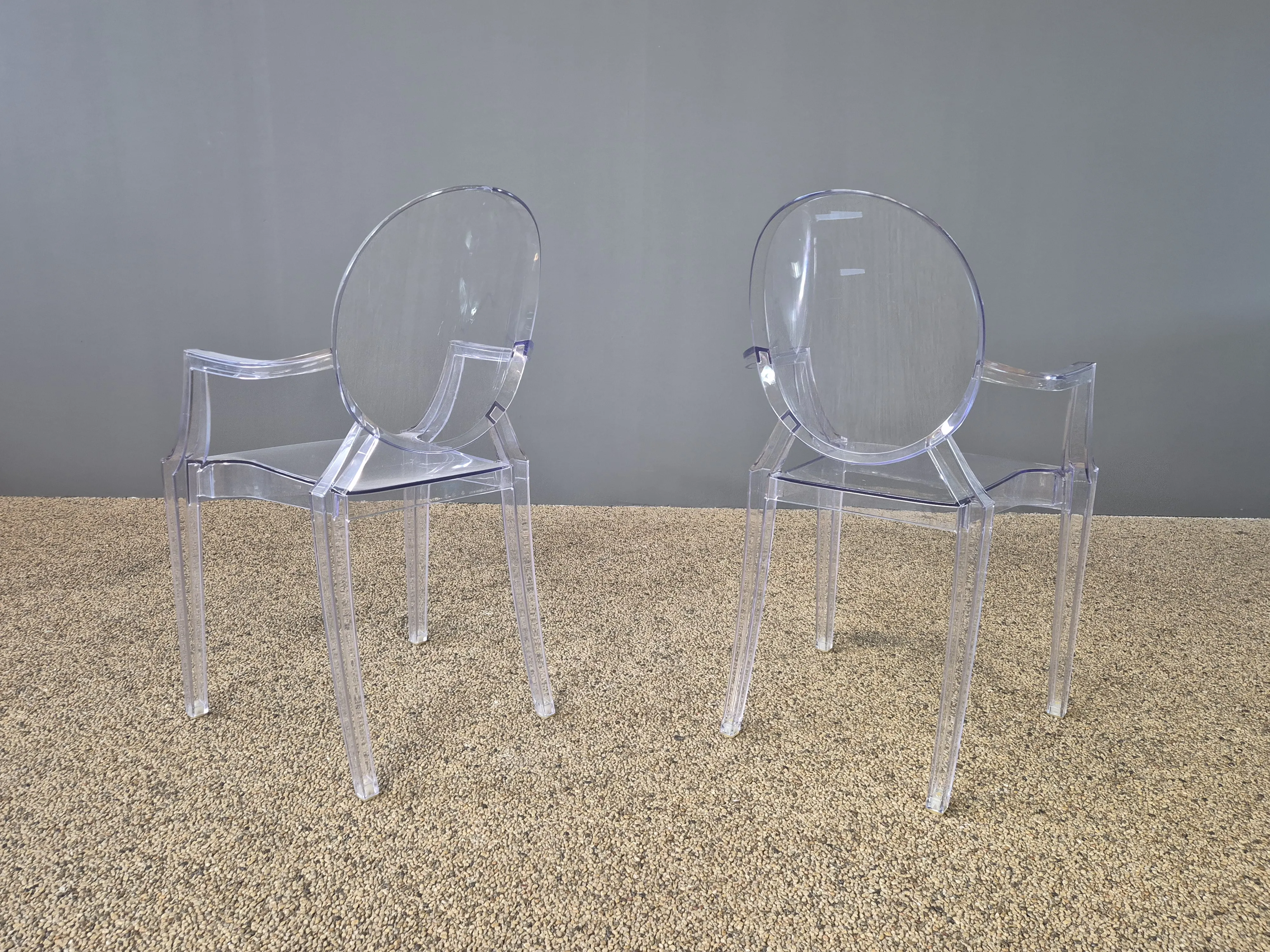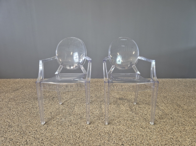 10. 2st Kartellstolar / Karmstolar. Transprent plast.