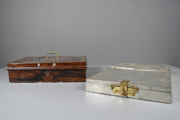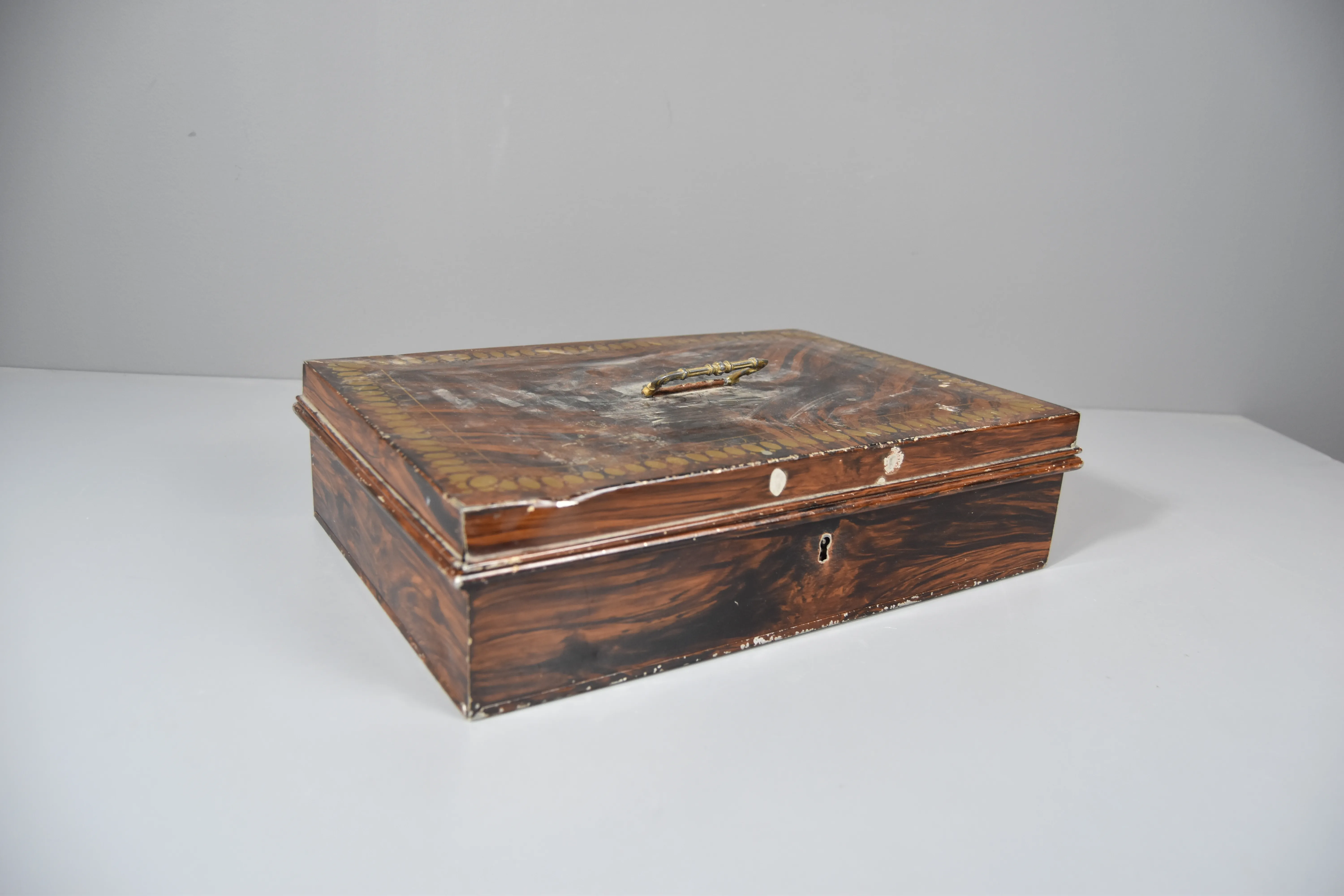 Brun: Höjd 10cm Bredd 37cm Djup 26cm. Slitage. Nyckel saknas.