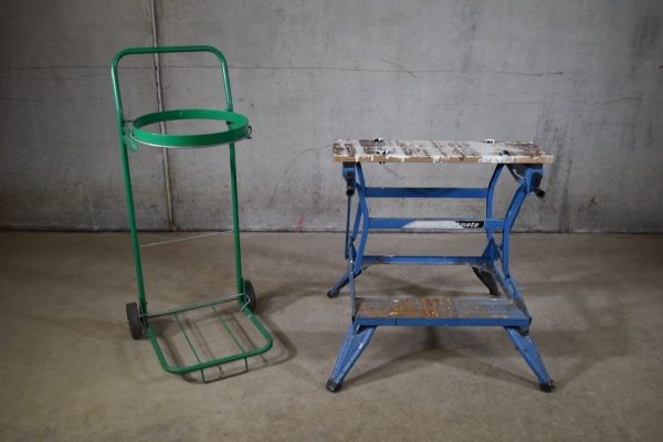 372. Arbetsbänk och sopkärra.