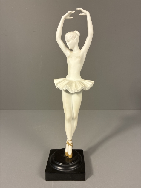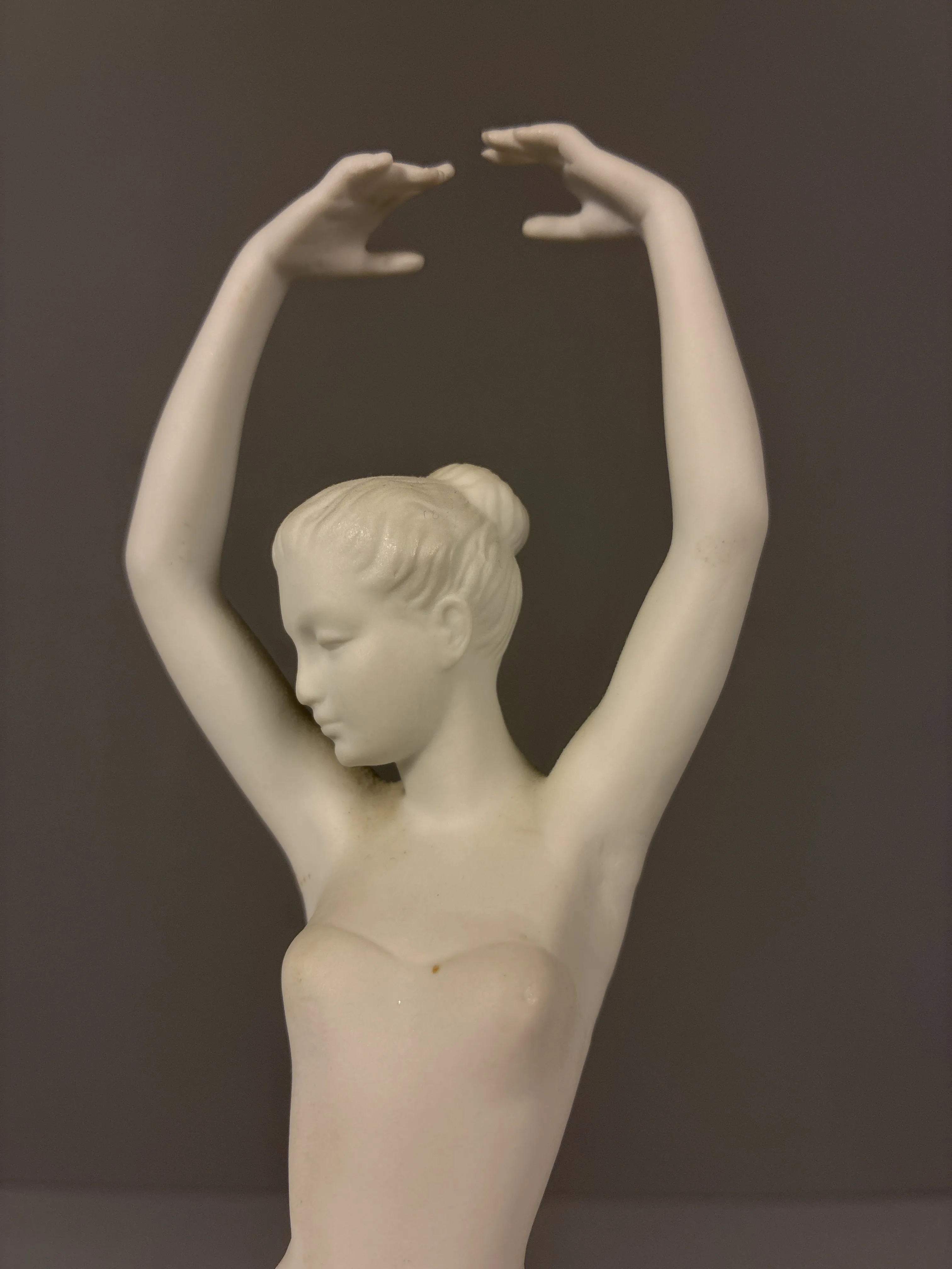 Skulptur i porslin. Smuts och åldersslitage. Höjd: 31,5cm.