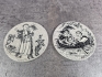 Tre alster av Björn Wiinblad. Två plaketter(15cm i diameter) samt en ljusstake.