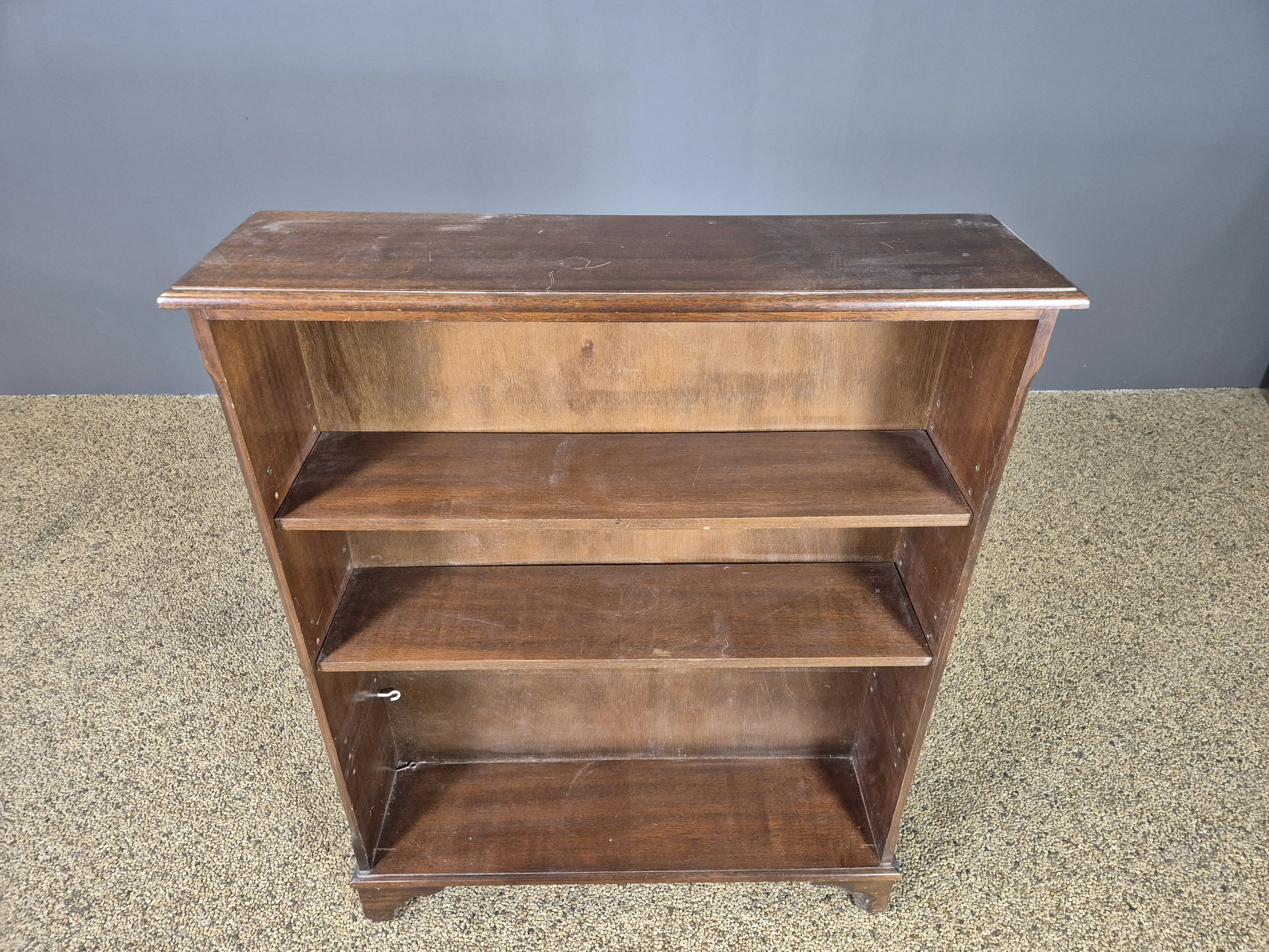 Höjd 119cm Bredd 95cm Djup 26cm. Slitage. Hyllbärare saknas.