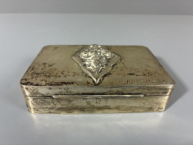 Indiskt skrin med Insats i trä liknande bambu. Märkt Sterling på undersidan. Bredd:13,5cm Höjd:3,5cm Djup:9cm. Totalvikt 256g.