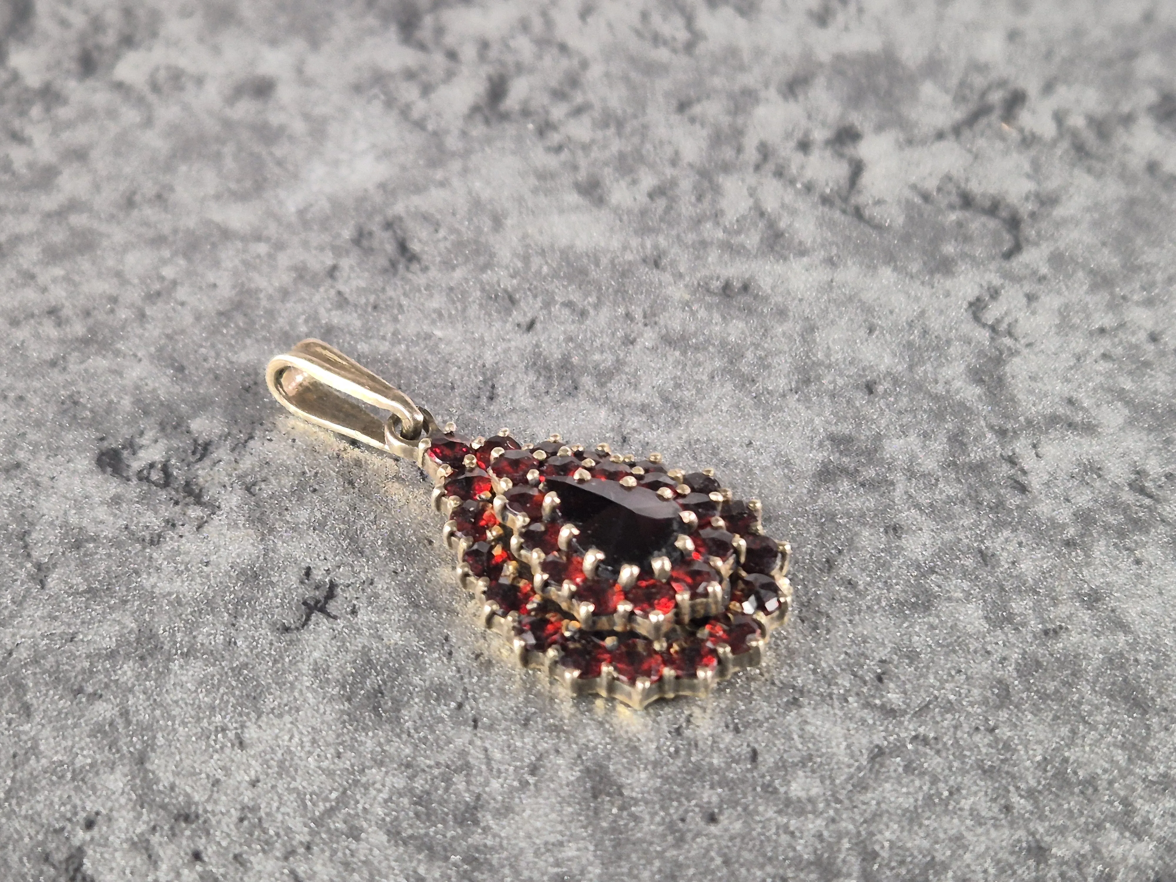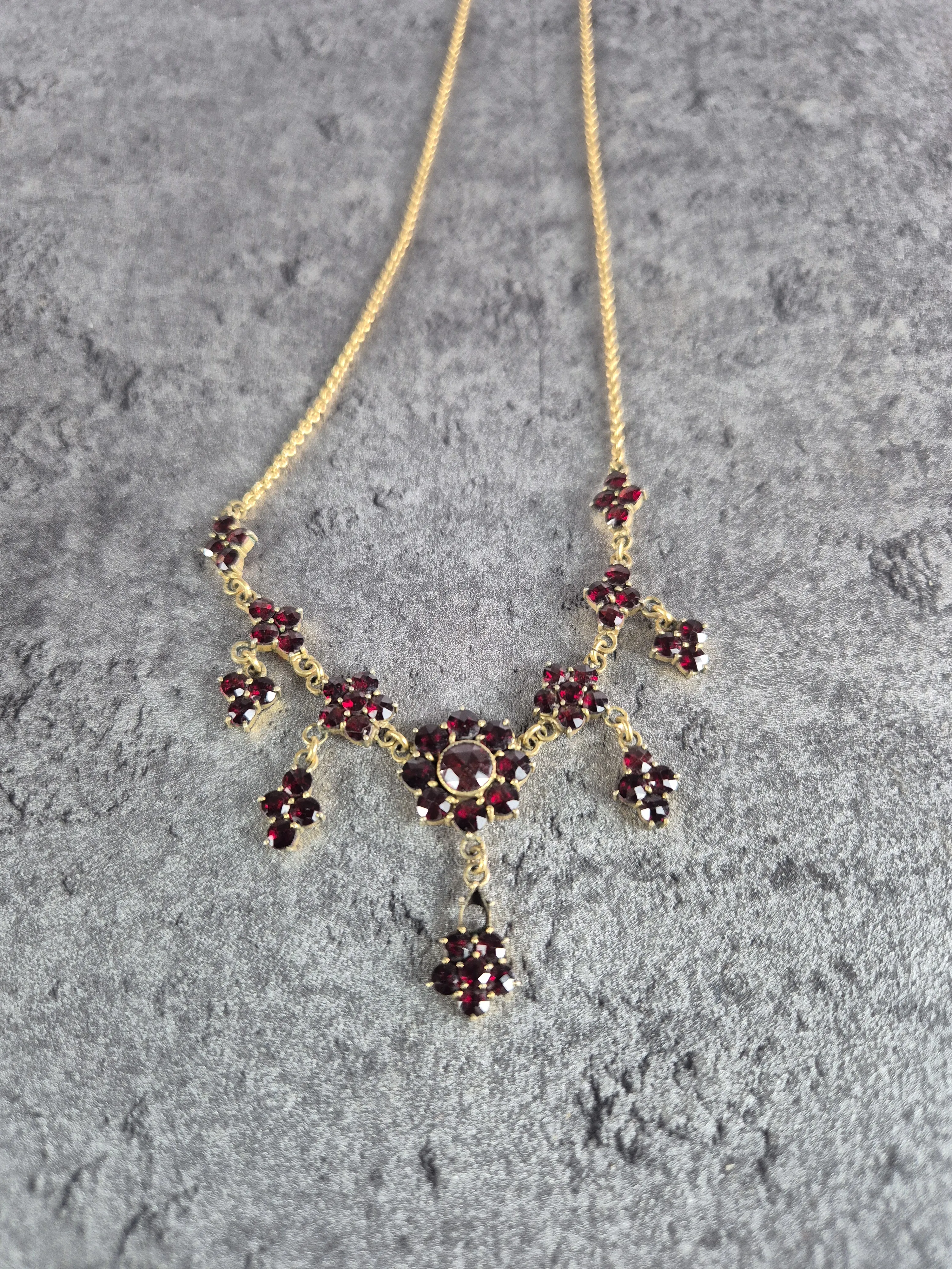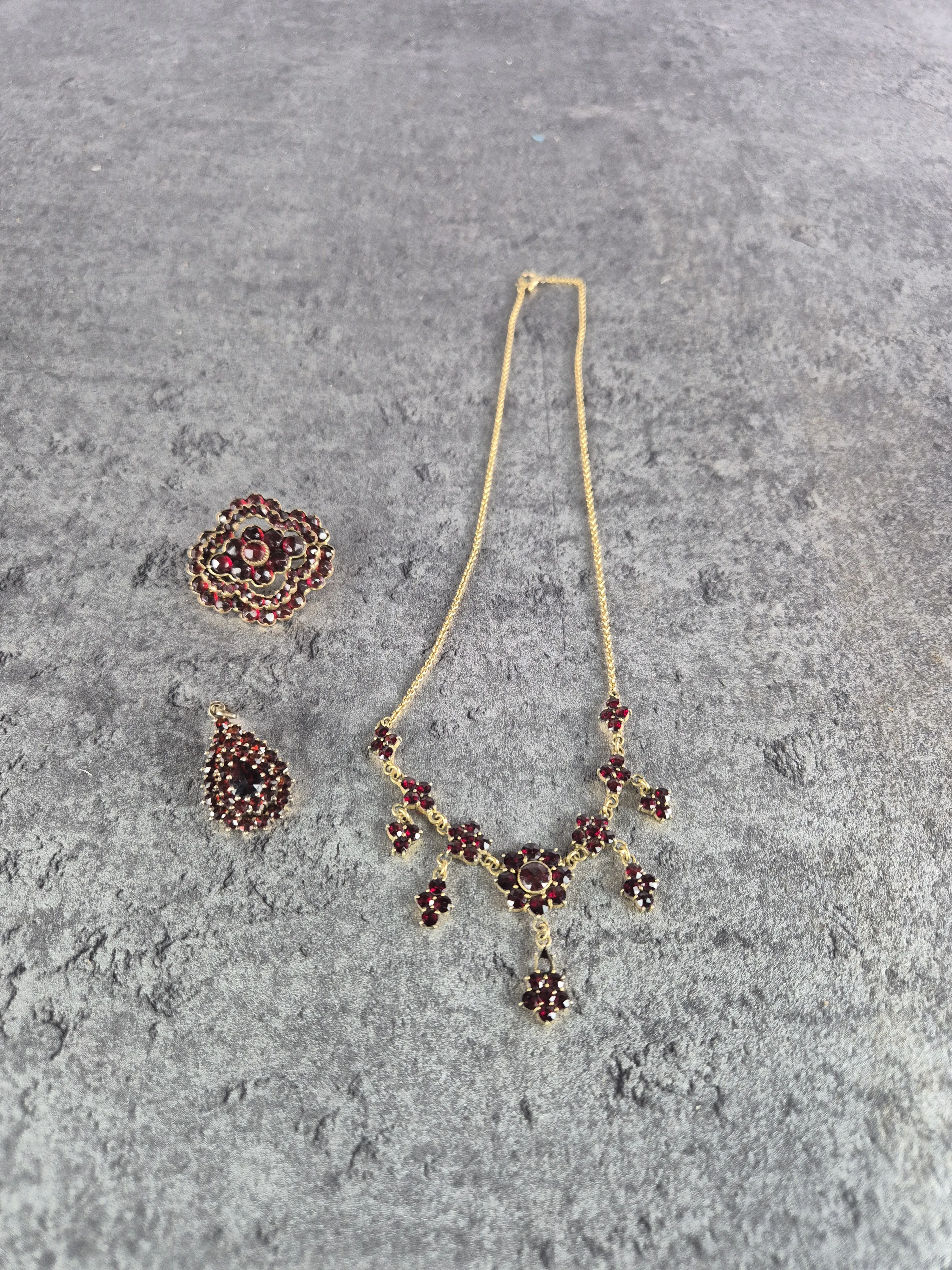 Collier med granater, brosch och hänge.