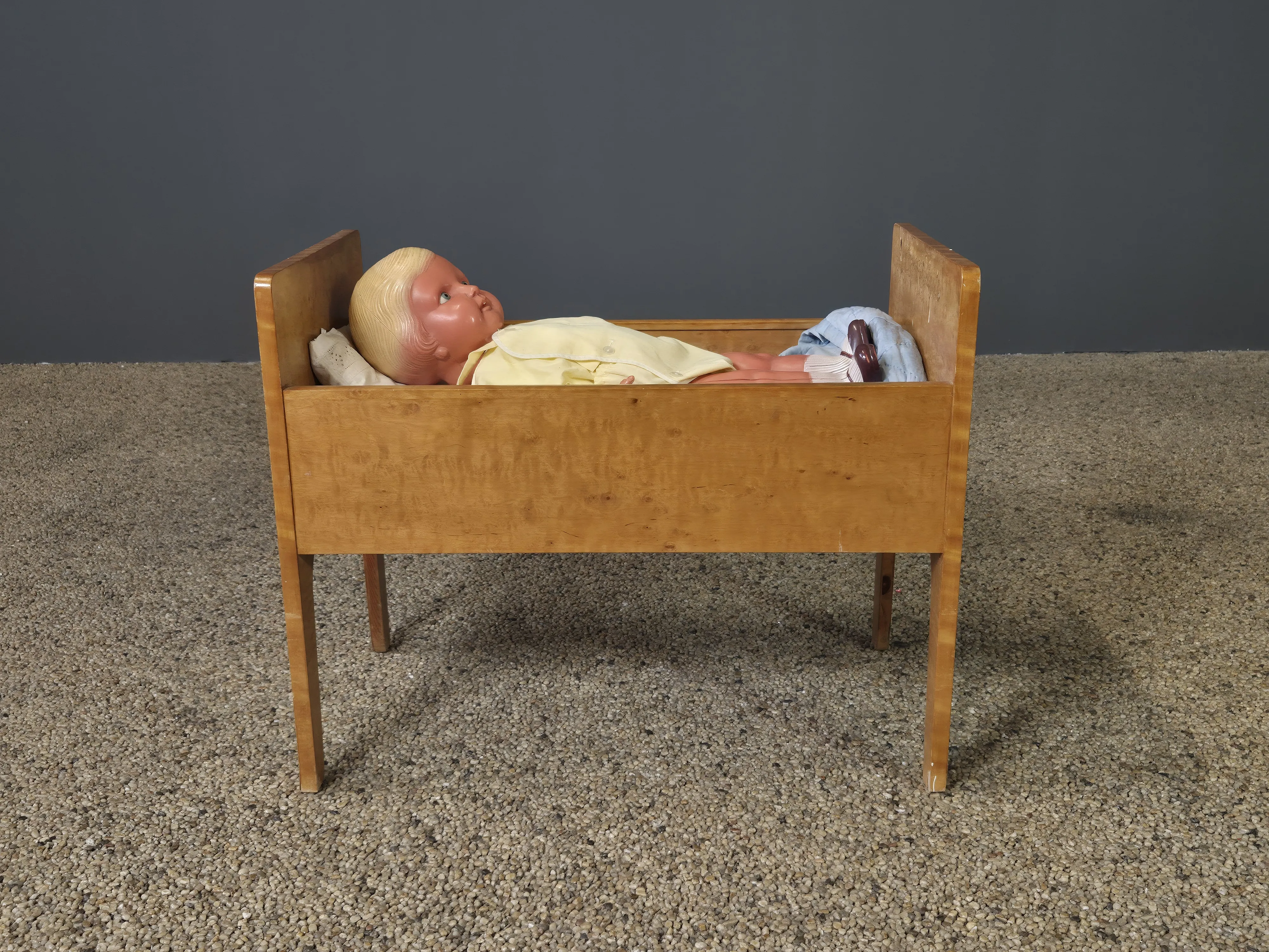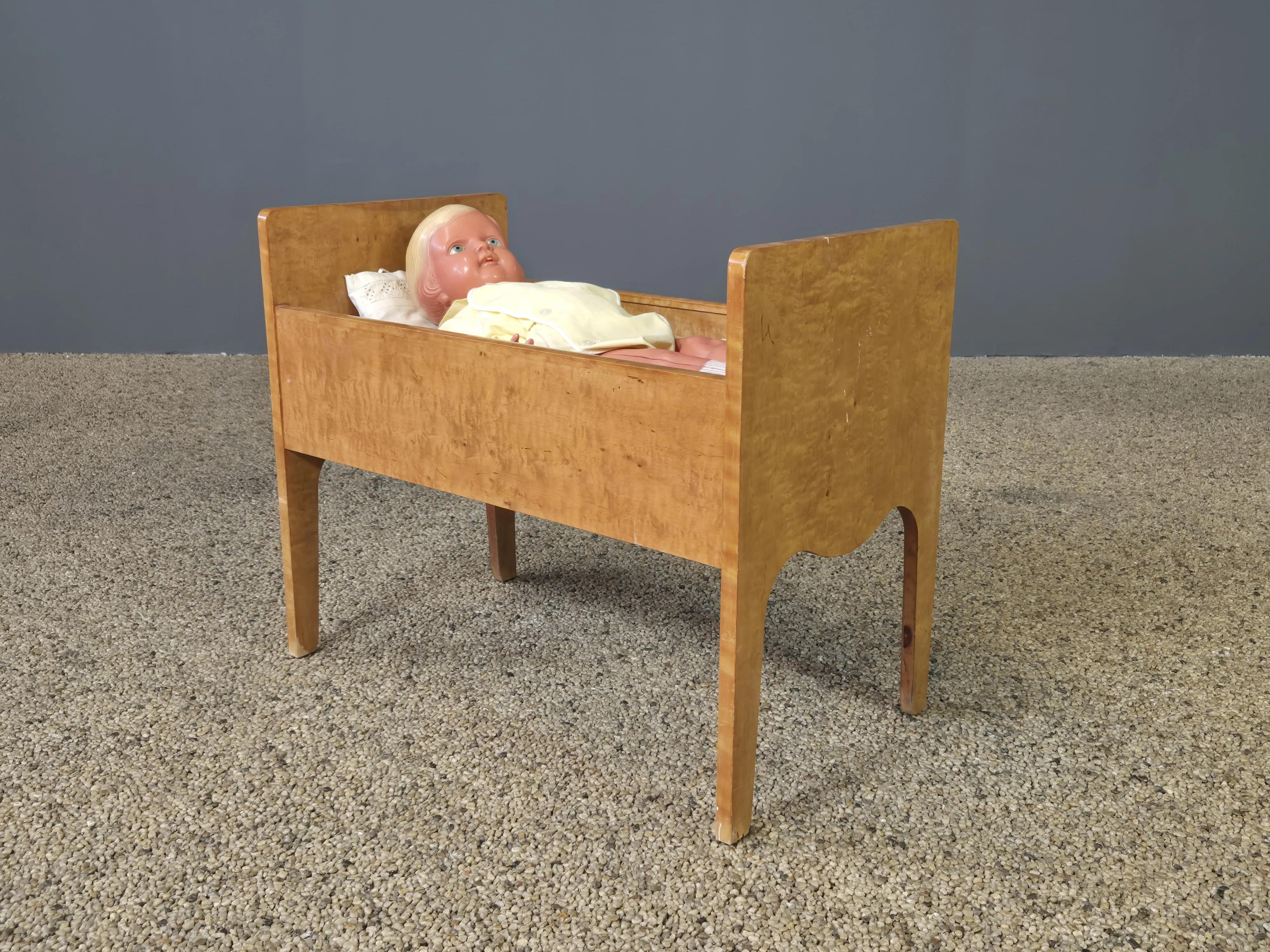 324.Docksäng med docka och bolstermadrass. 1900-talets första hälft.
