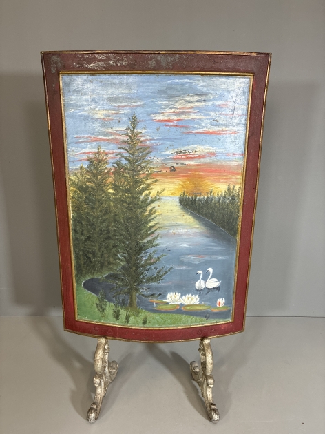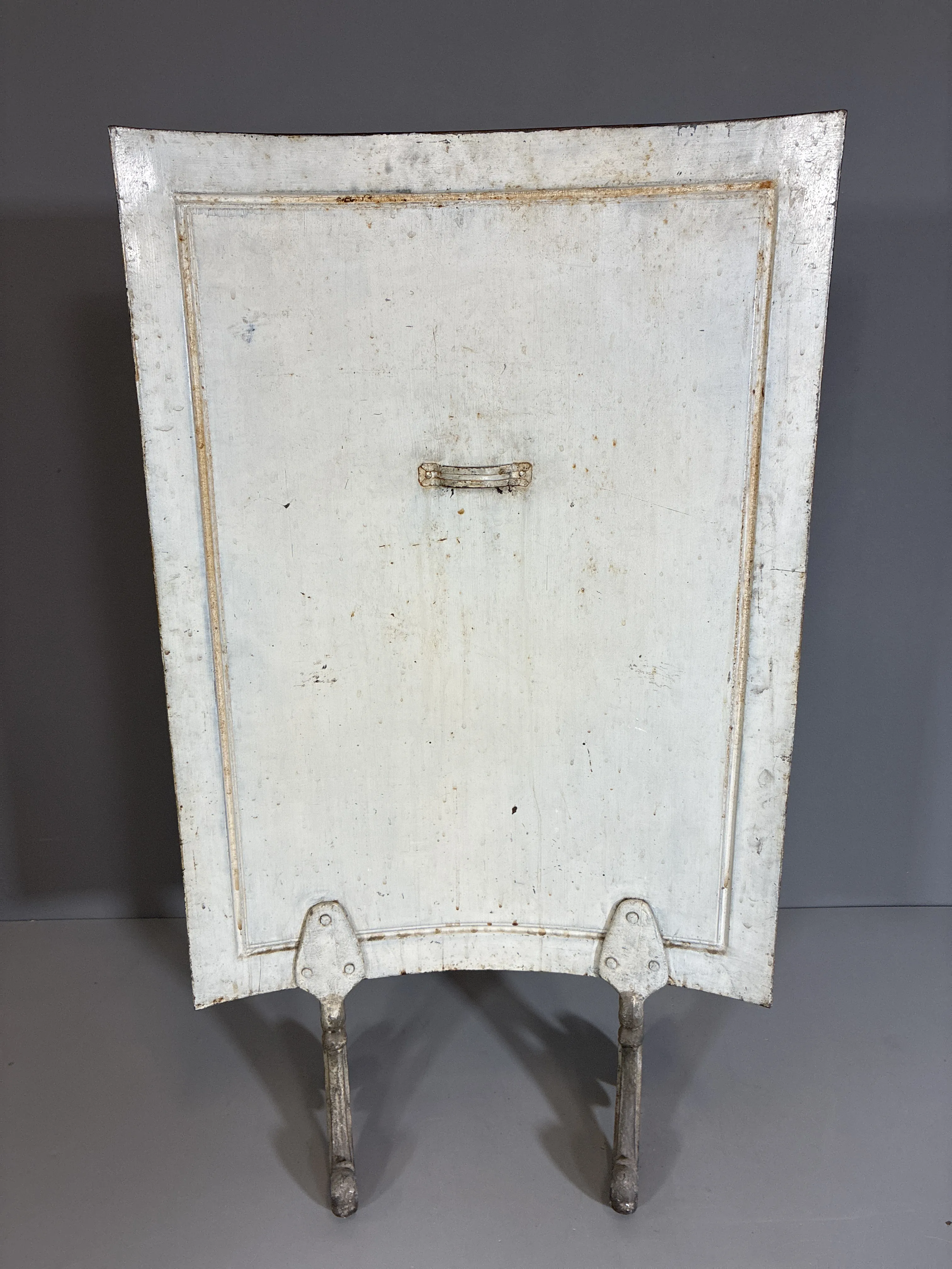Bemålad plåt med ställning i gjutjärn. Höjd: 94,5cm. Bredd: 55cm. Bruksslitage.