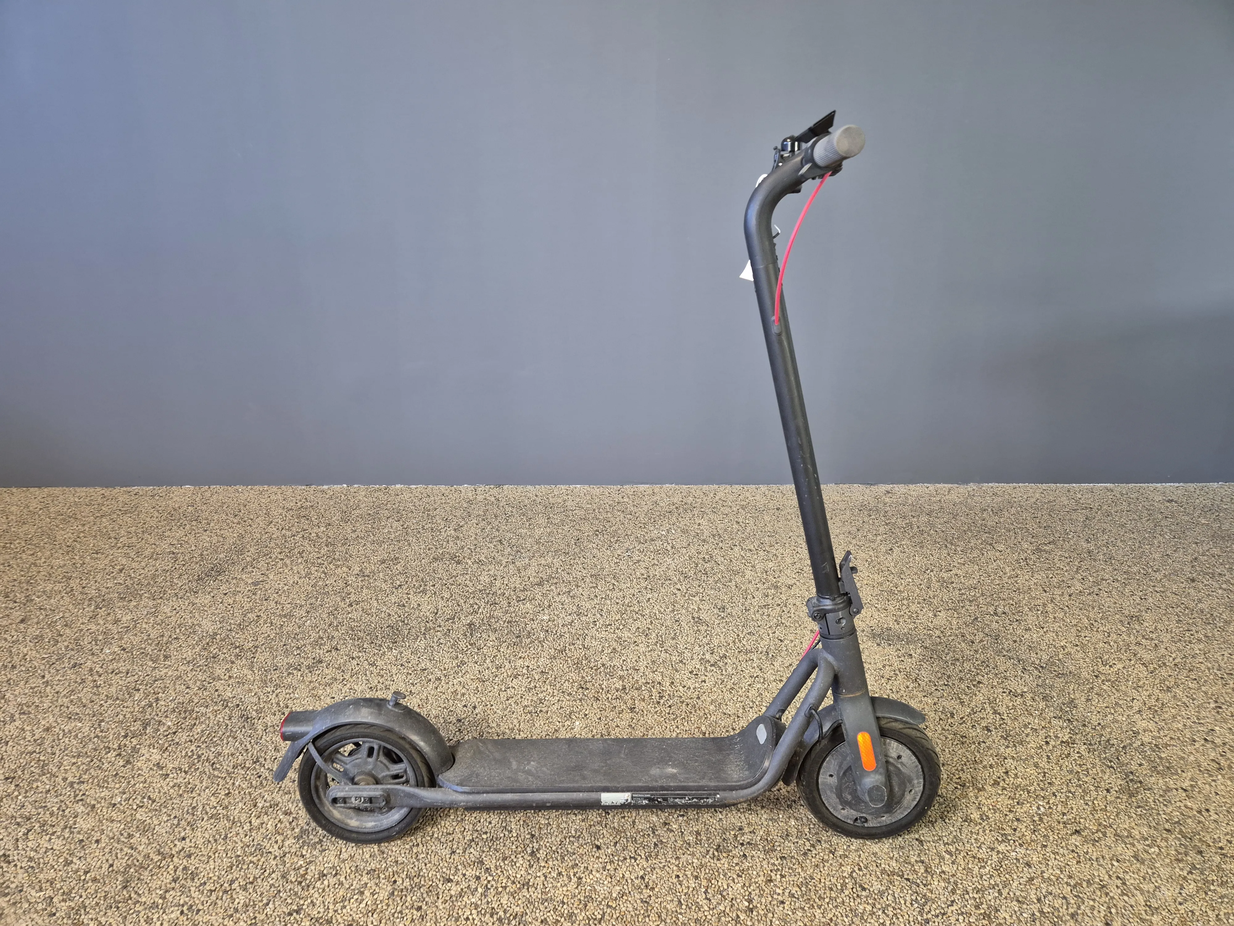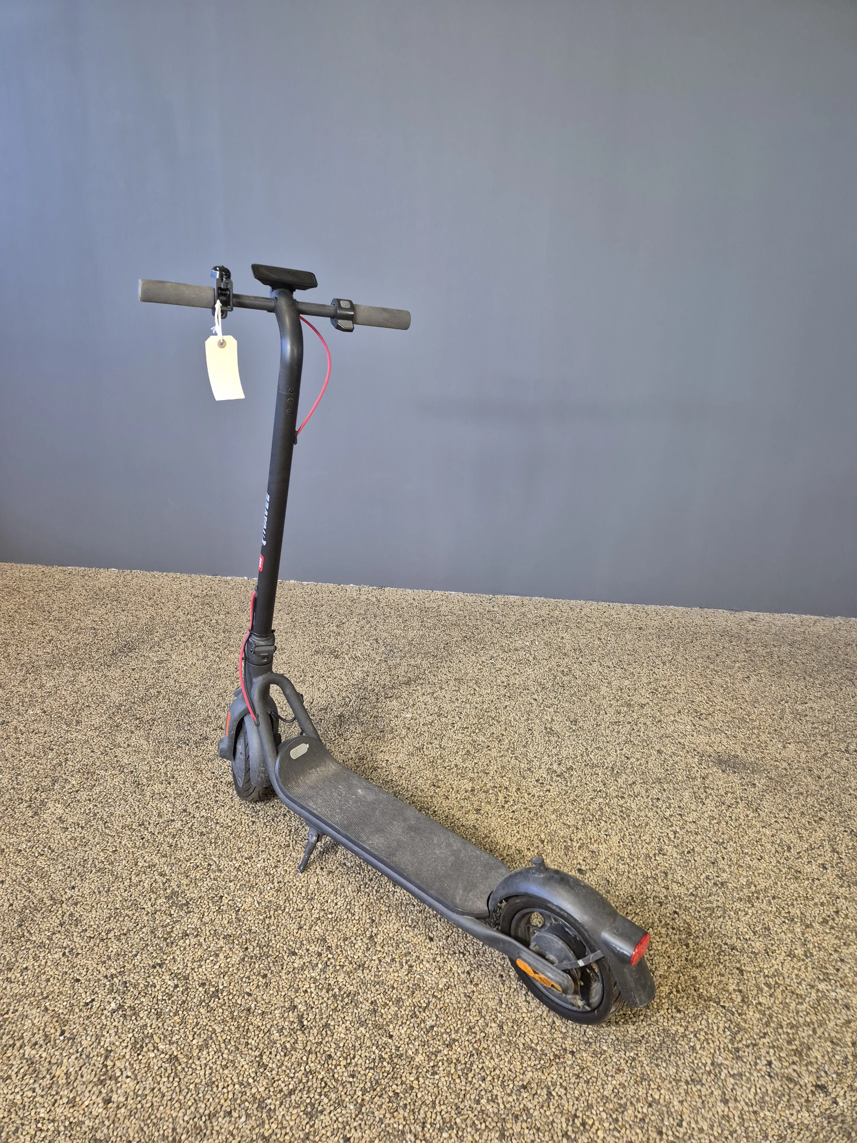 Laddare saknas. Fäste till styre defekt. Slitage.