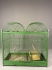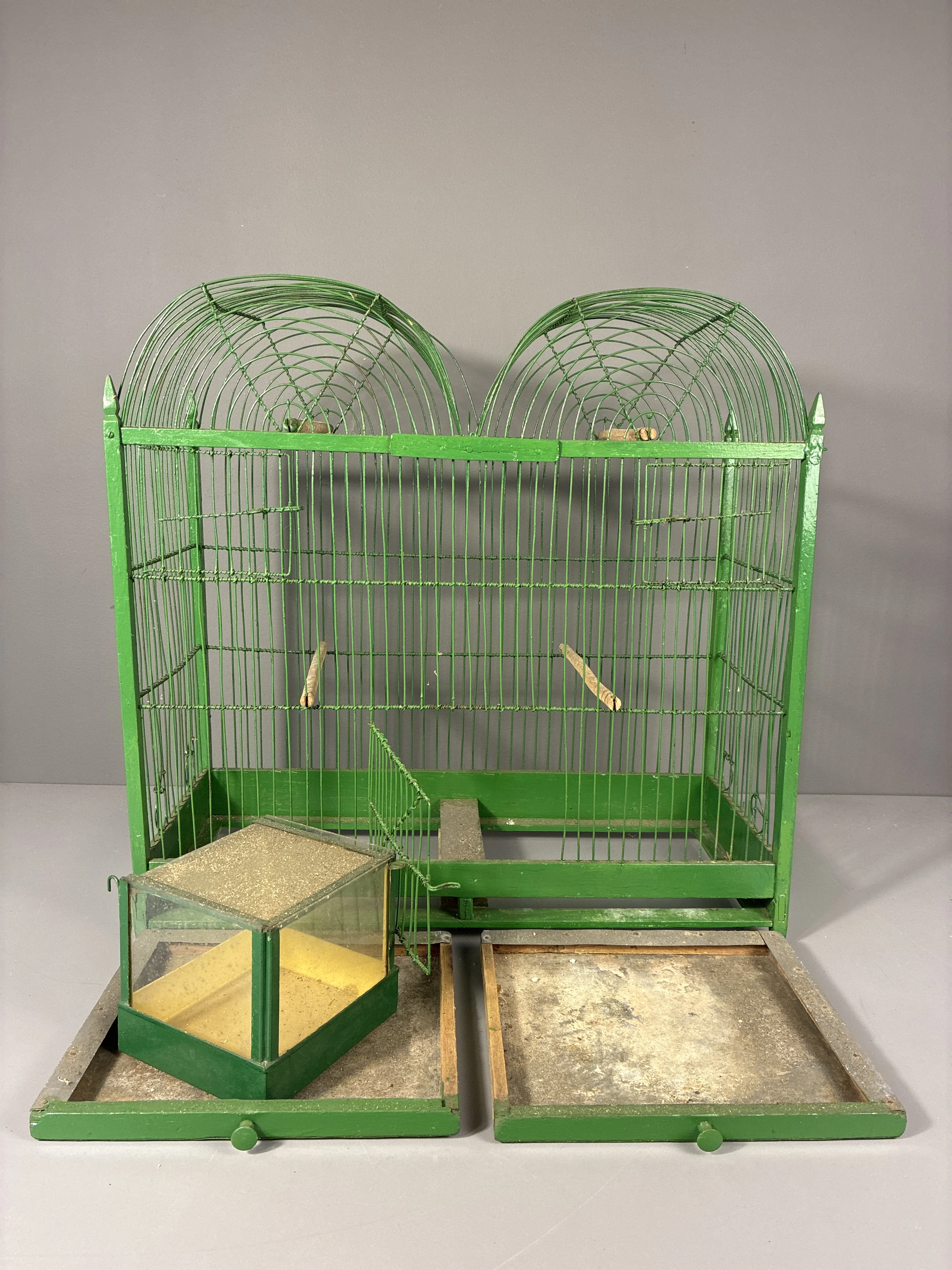 Grönmålad bur av metall och trä. Charmig modell med rätt patina. Höjd: 51cm. Bredd: 52cm.