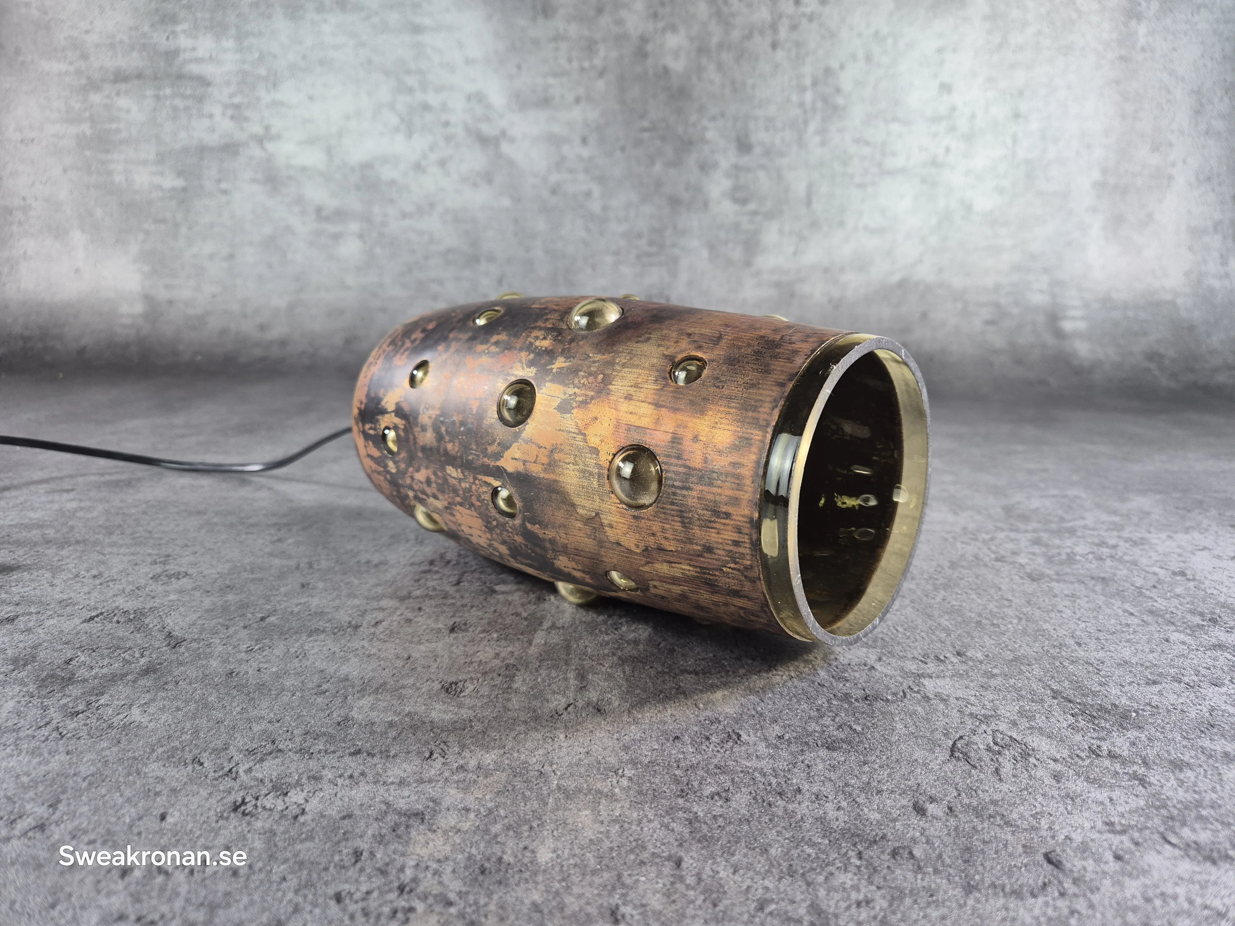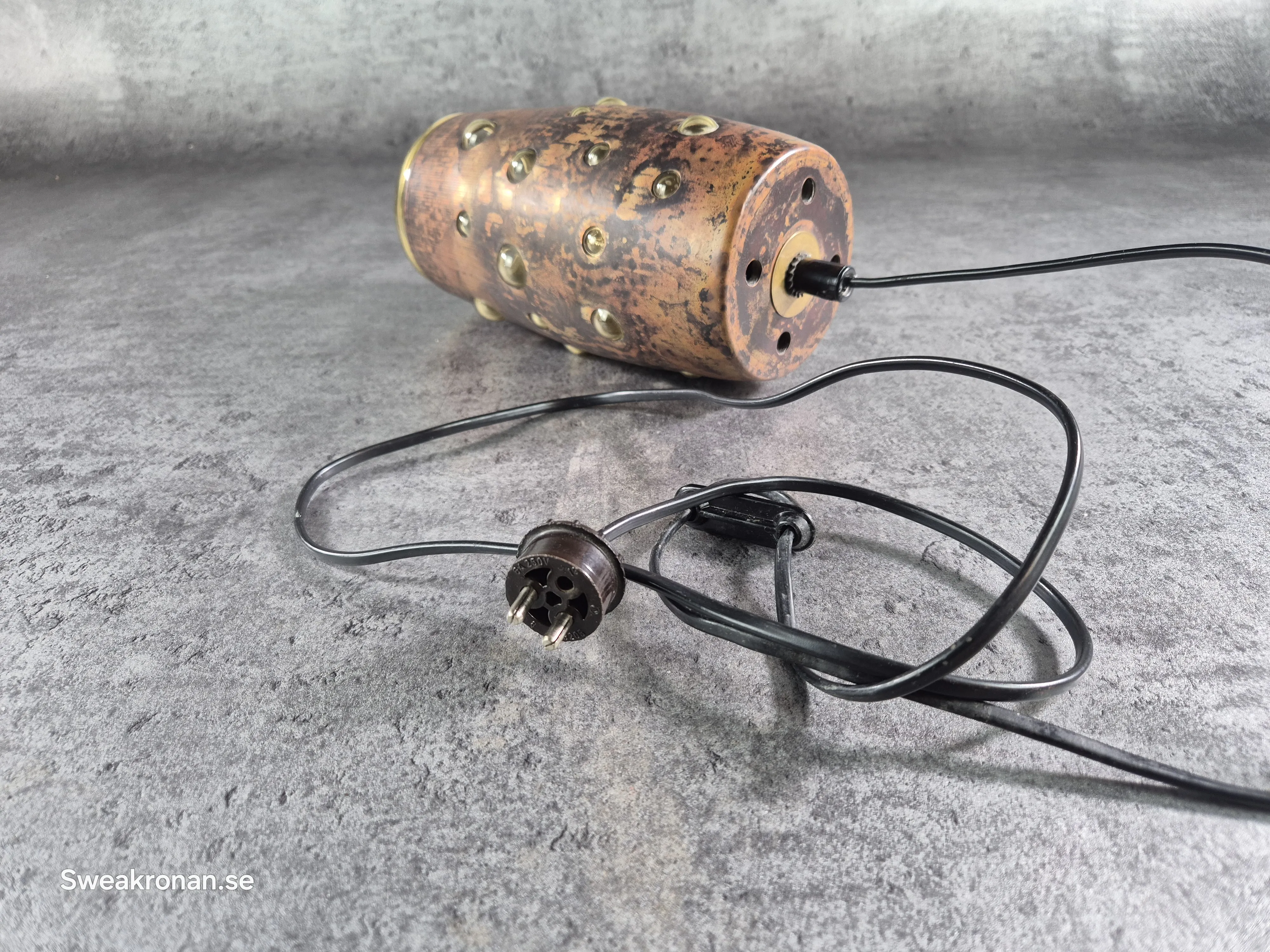 Höjd 21cm exkl kabel. Bruksslitage. Litet nagg nertill.