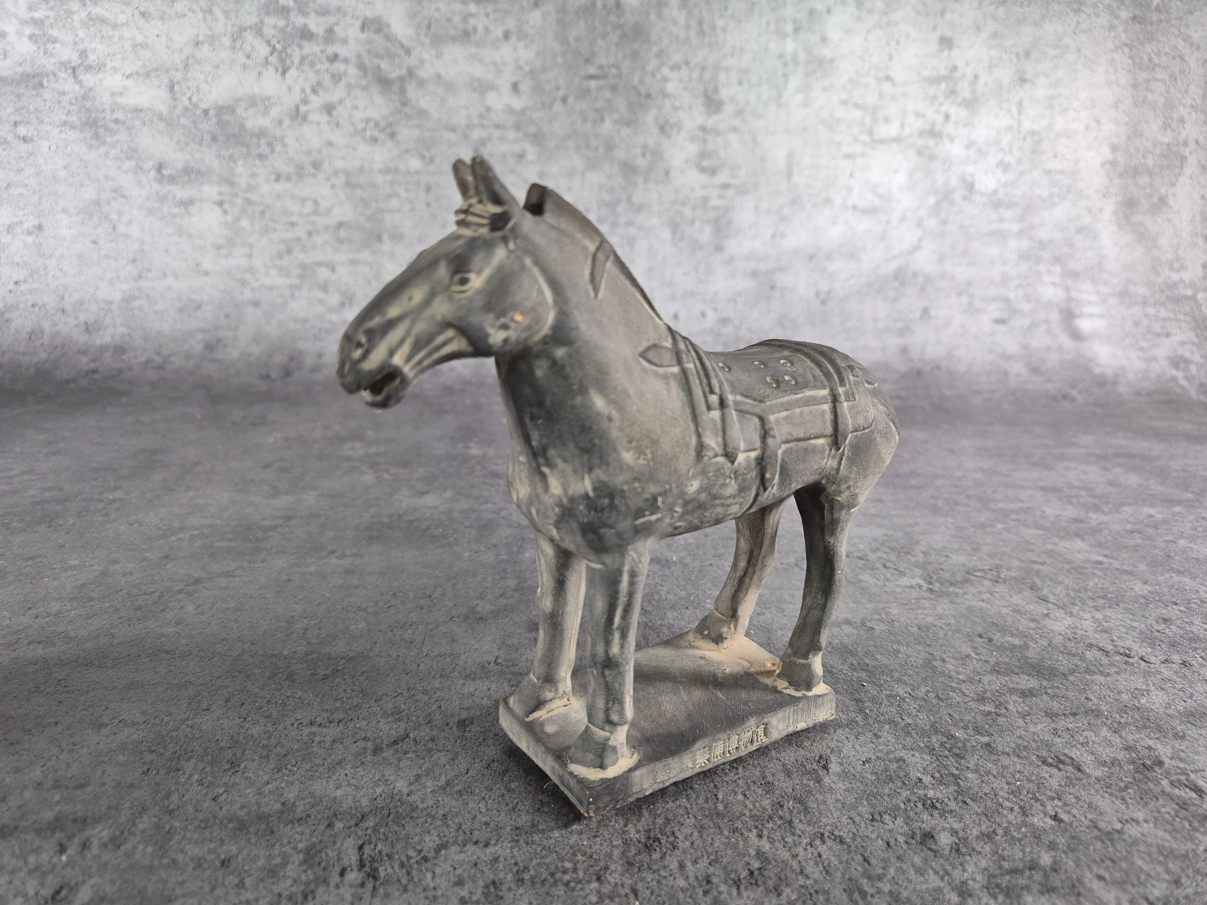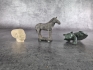 Häst: Höjd 14cm Bredd 17cm. Bruksslitage. Hästsvans limmad.