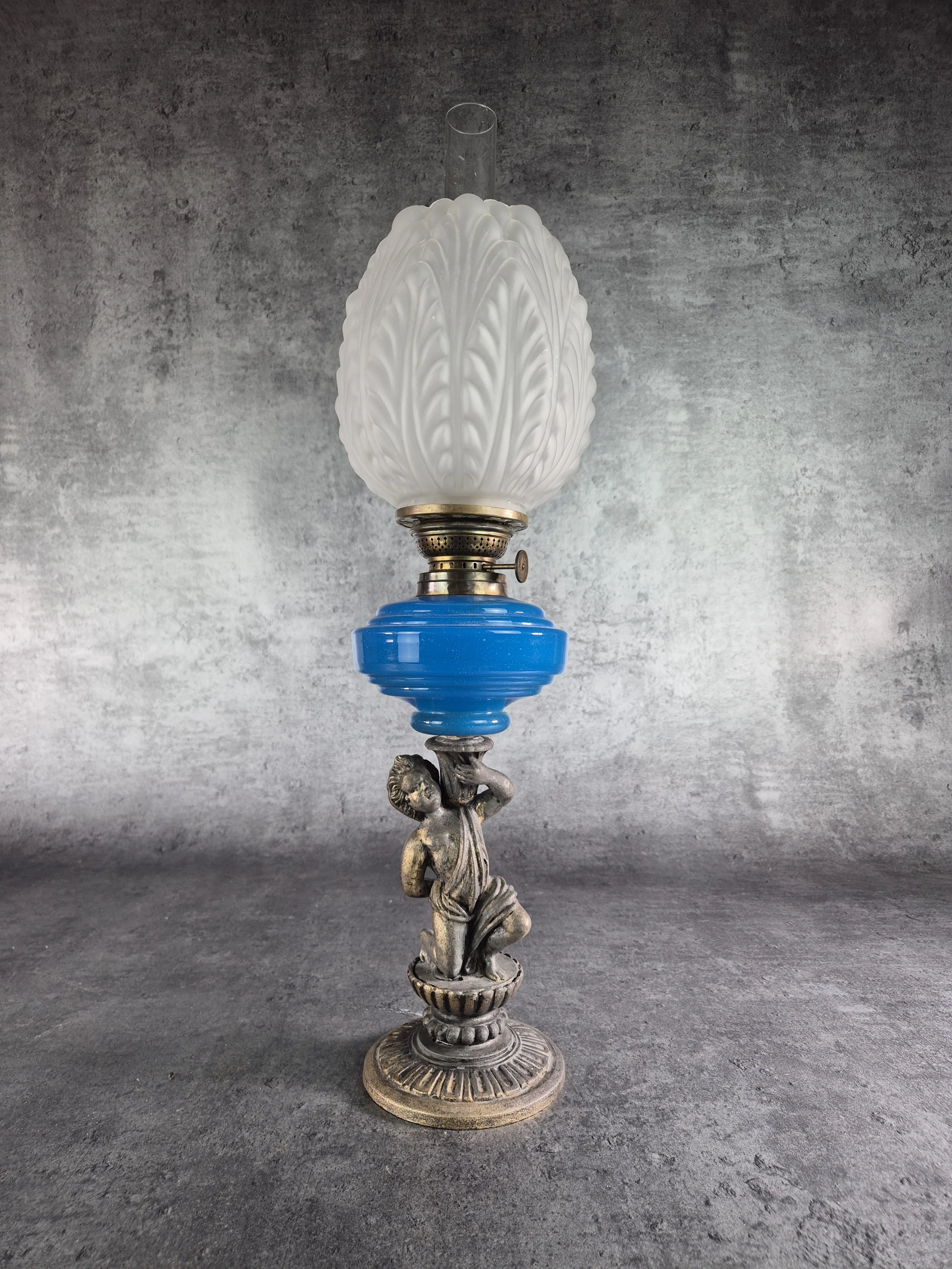 Höjd inkl brännglas 65cm. Bruksslitage.