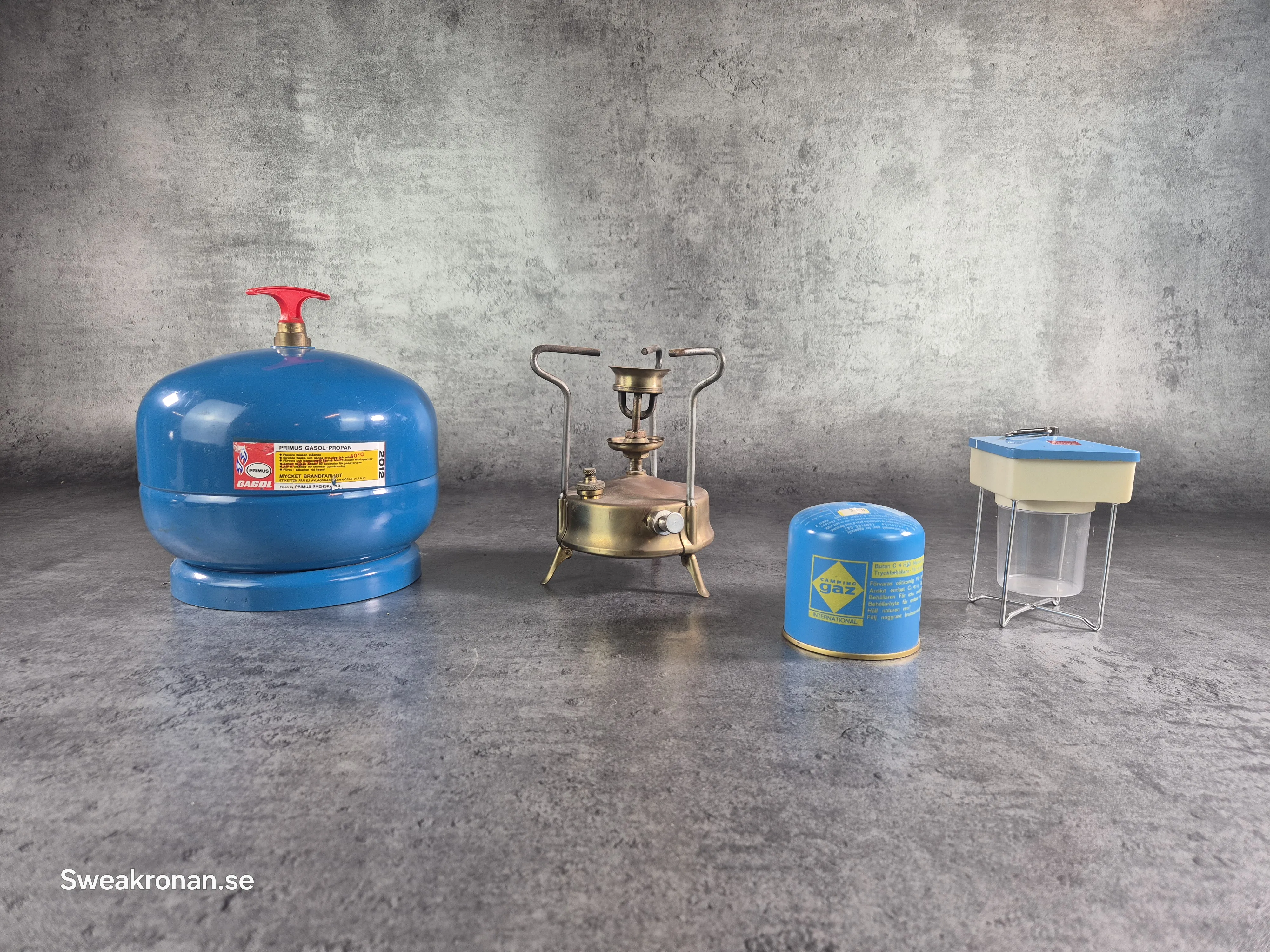 Gasolflaska med tillbehör.