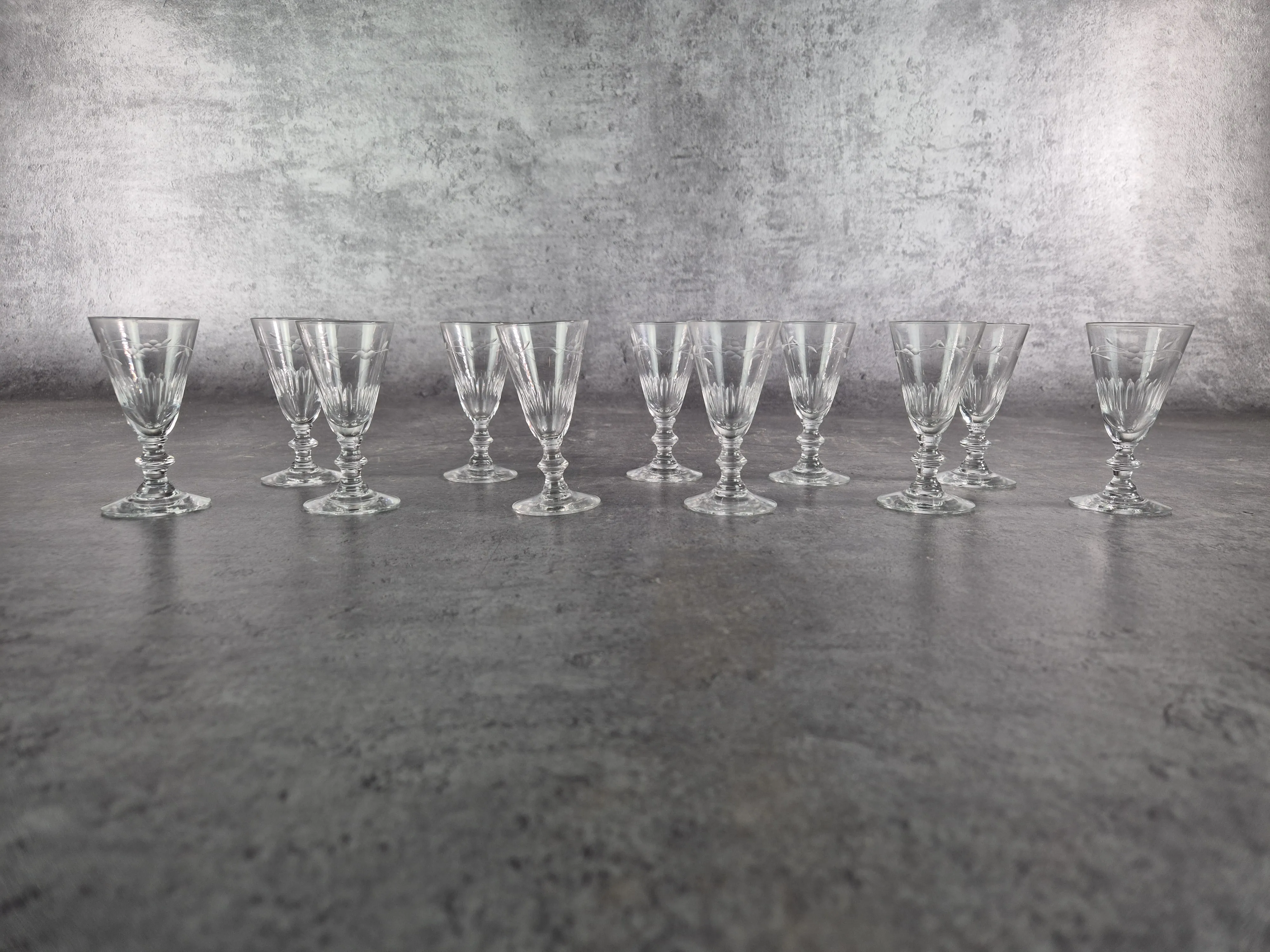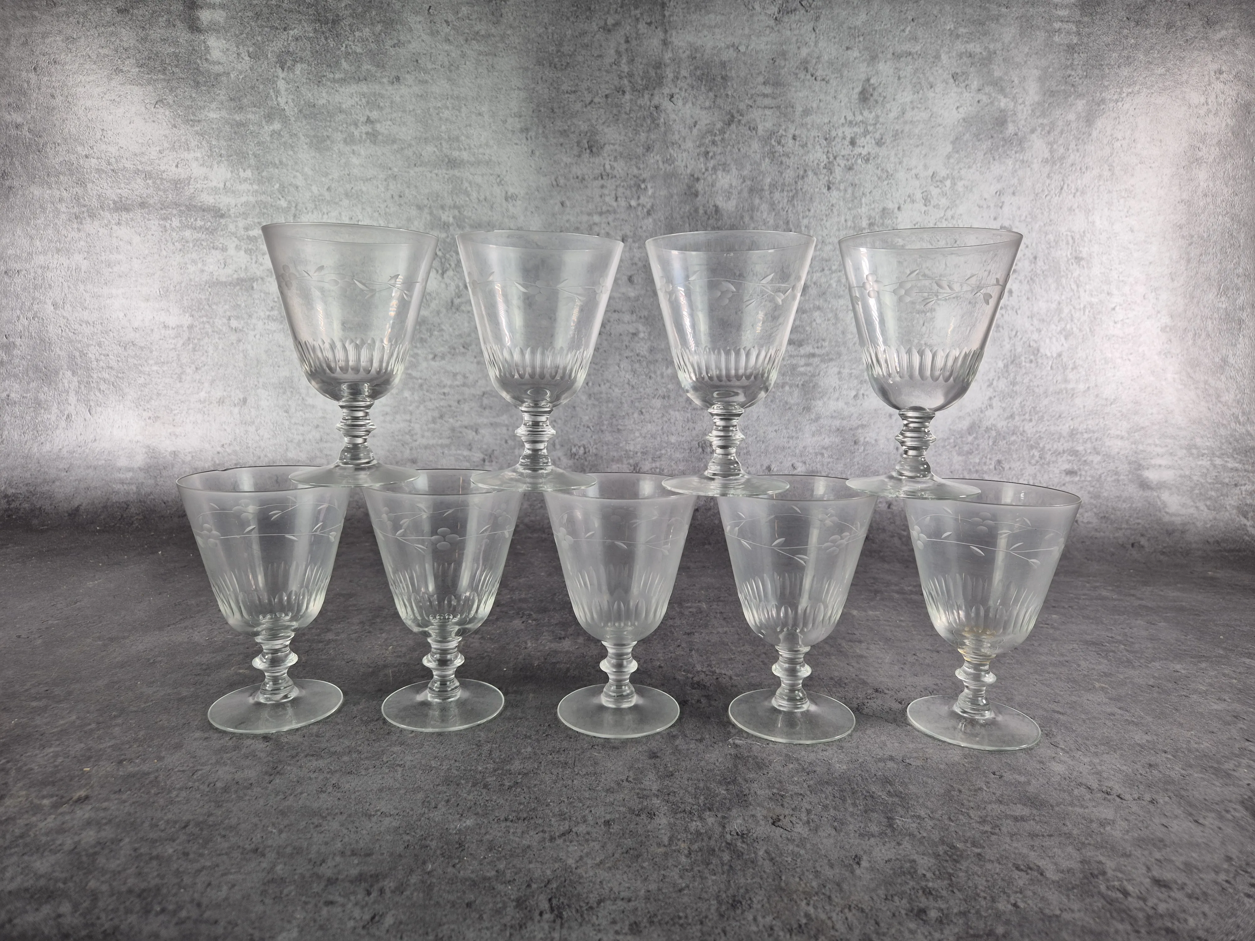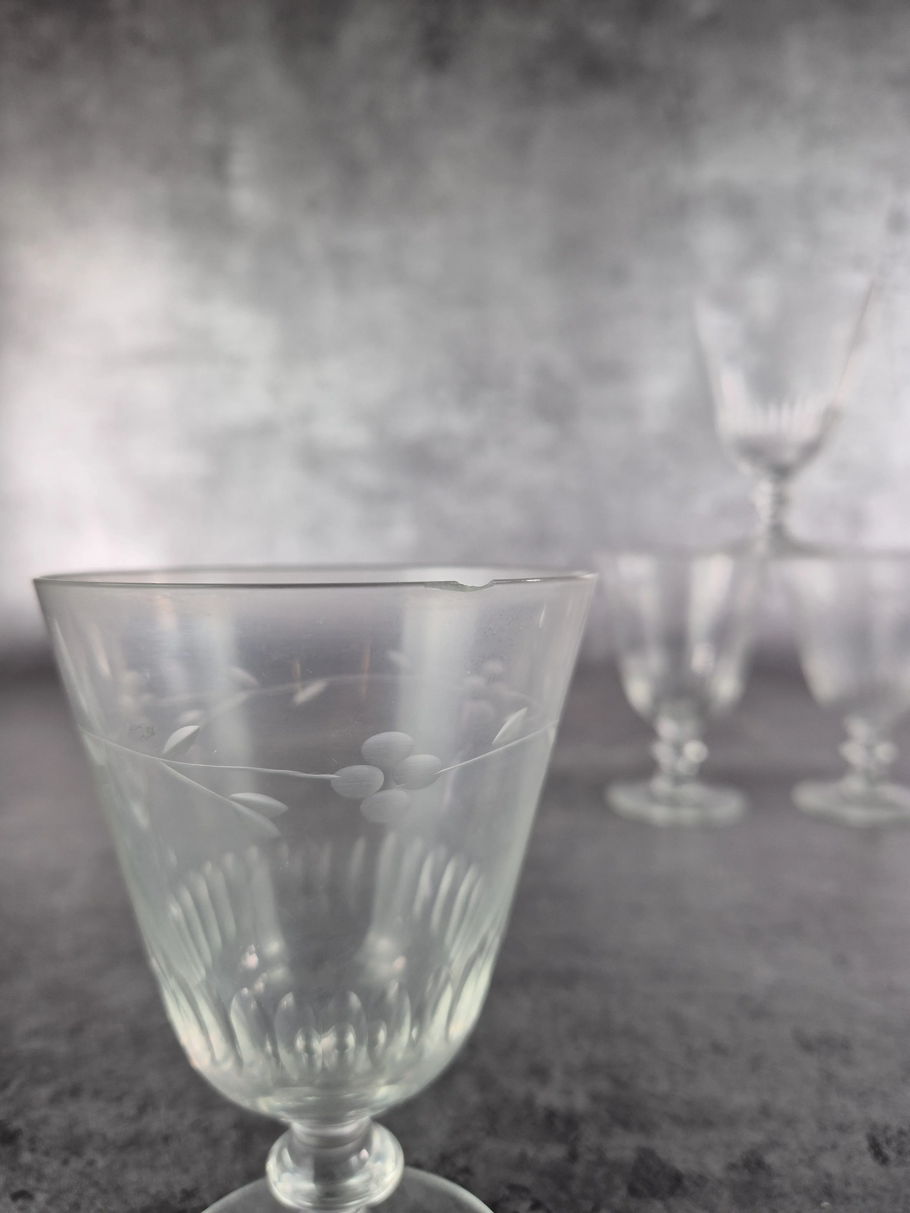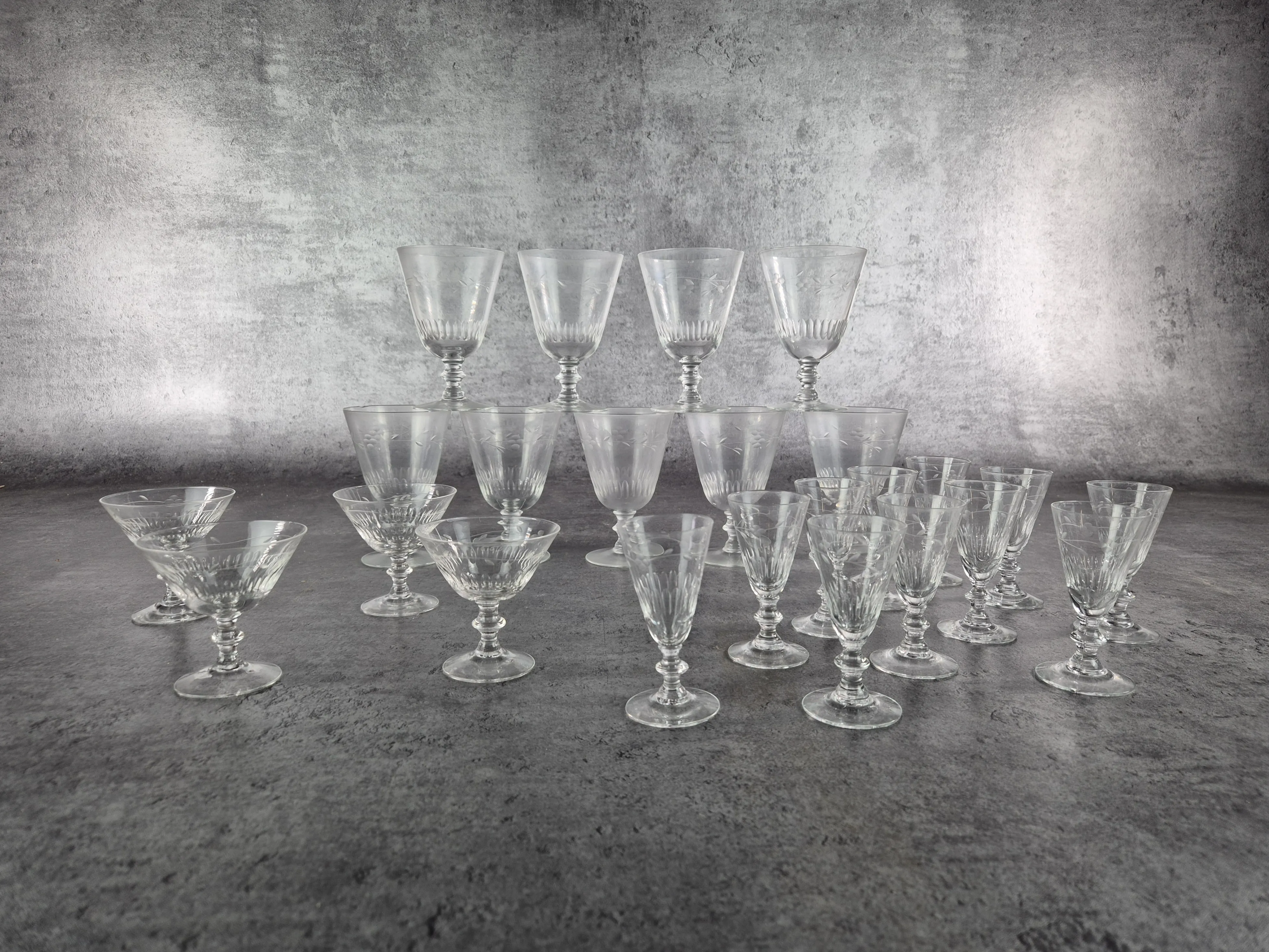 Parti glas i klarglas i olika modeller, bland annat vinglas och coupeglas.