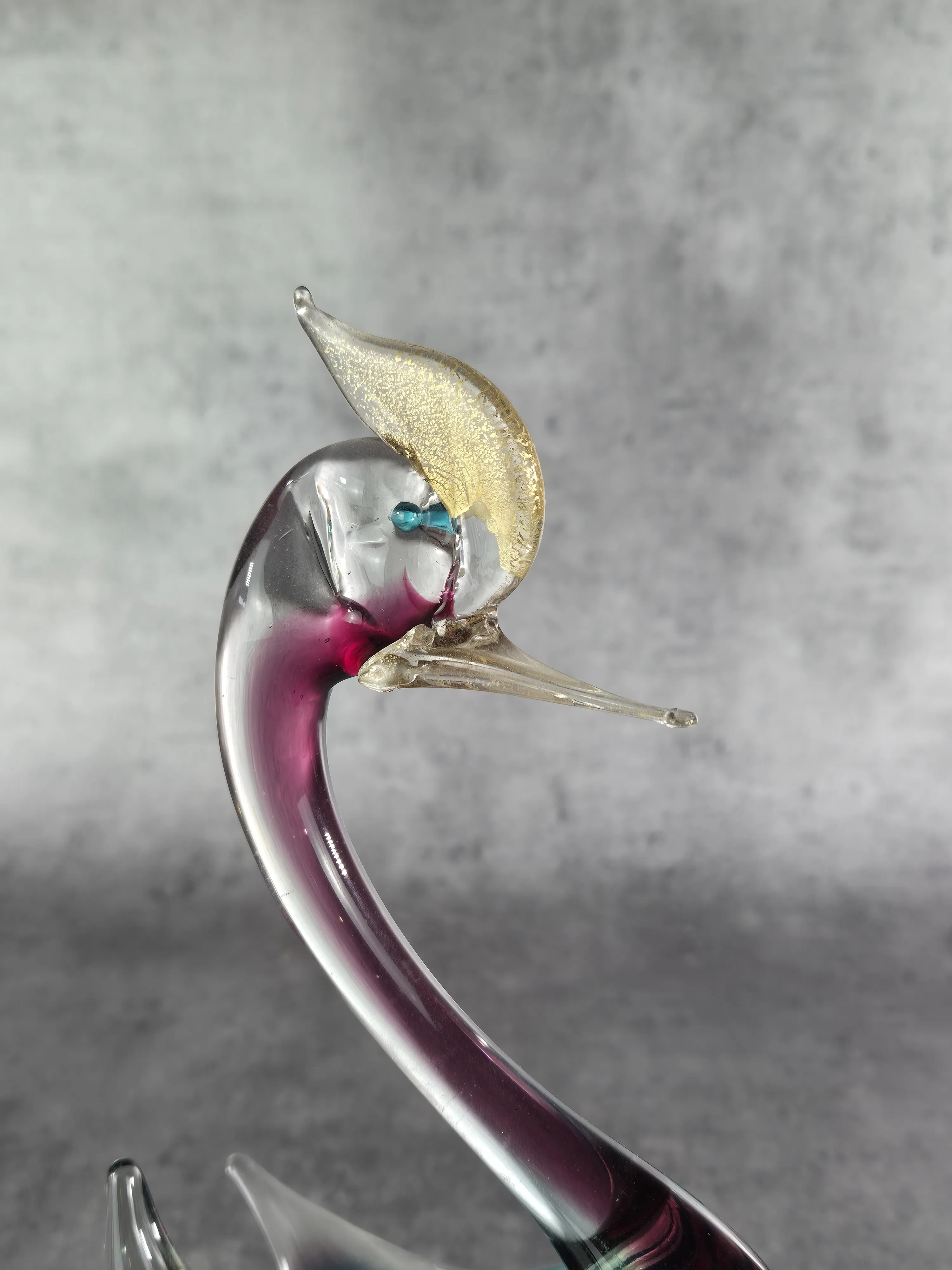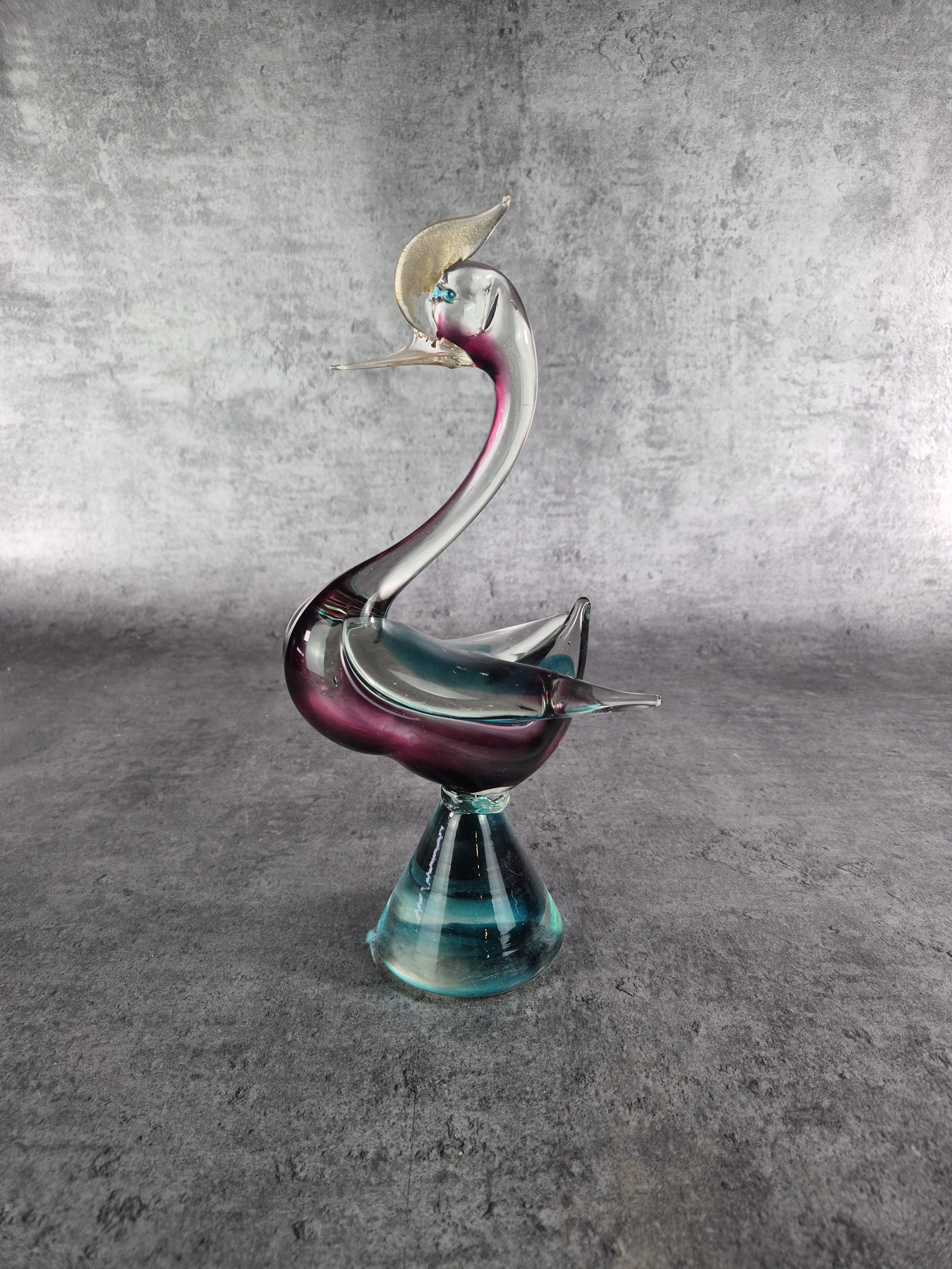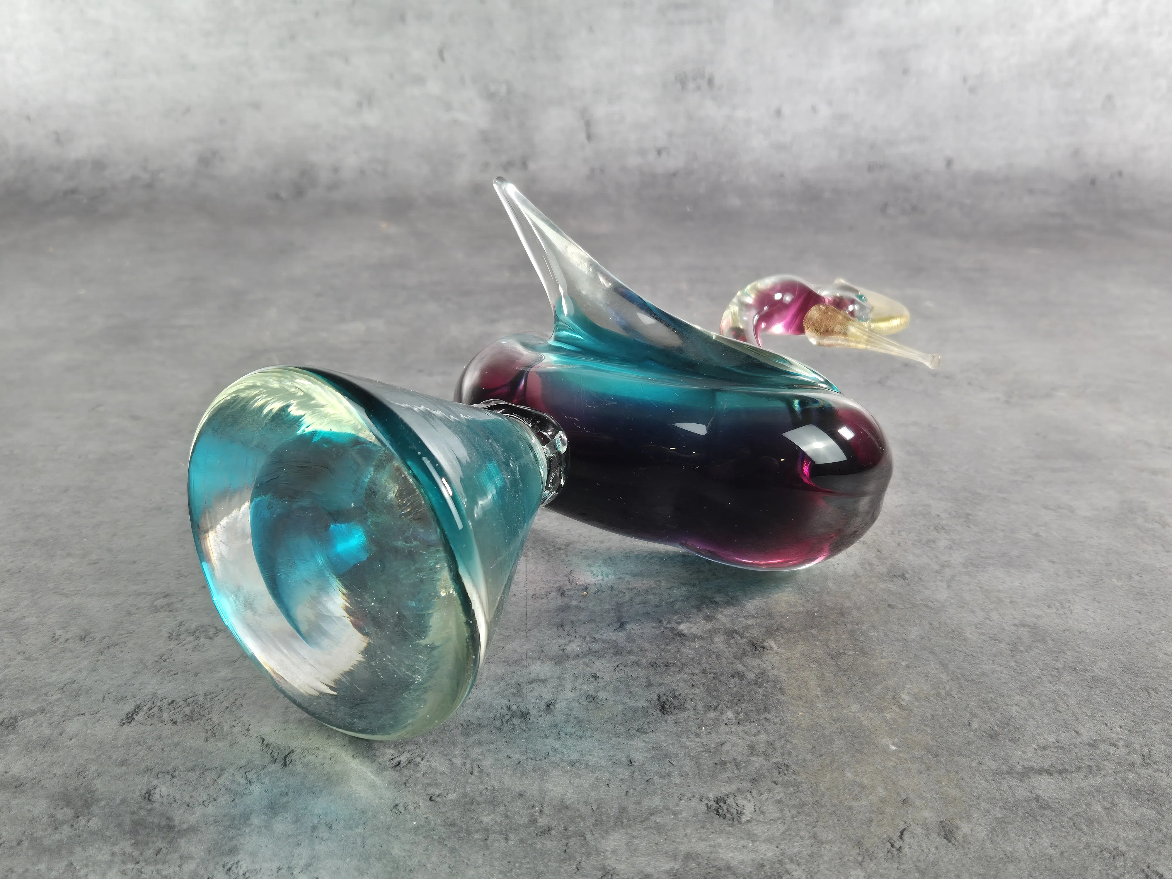 Glasfigur föreställande svan i flerfärgat glas. Åldersrelaterat slitage. Höjd:23 cm