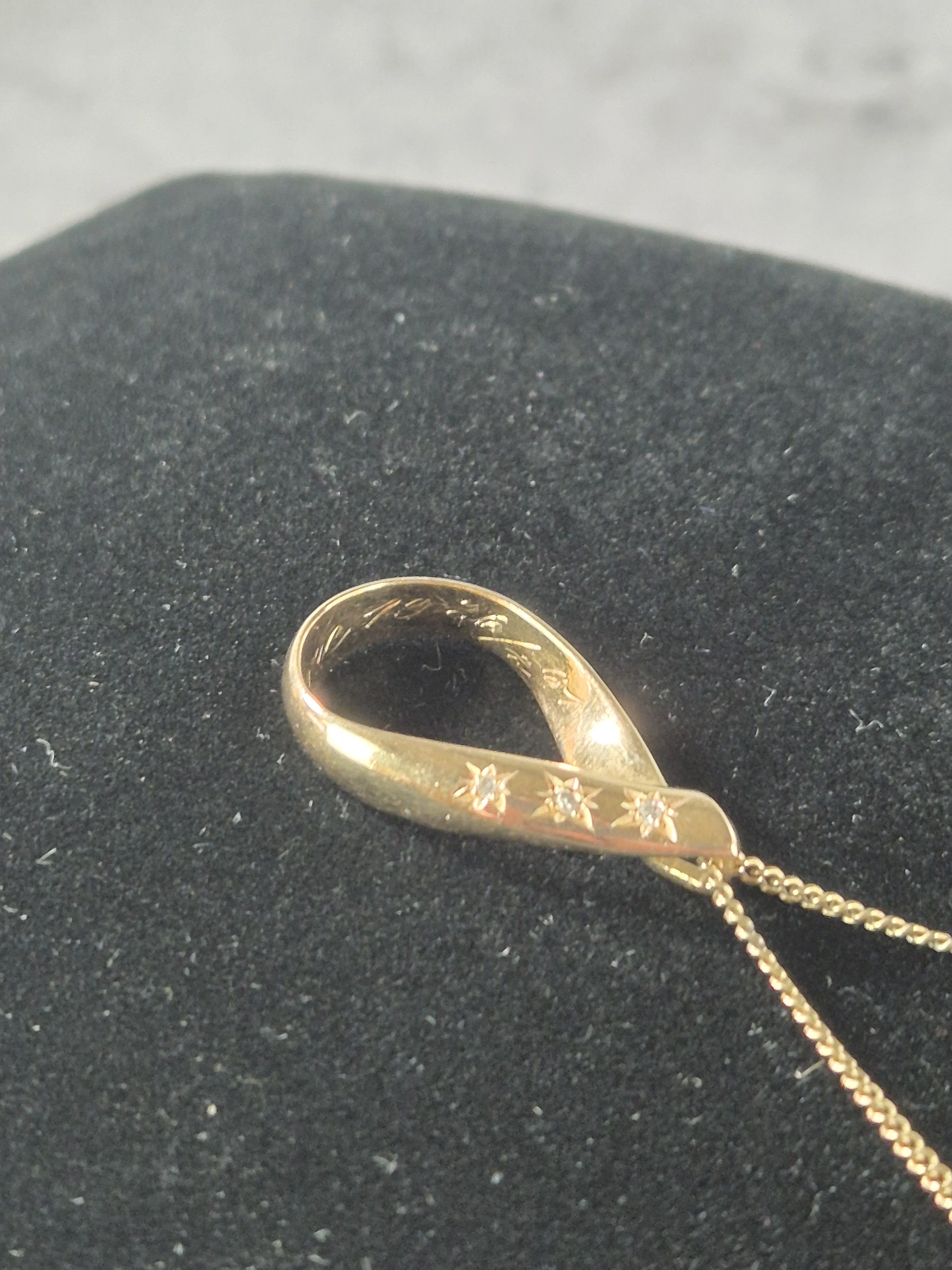 Vikt: ca 9,68g. Längd kedja: ca 45cm. Graverad.