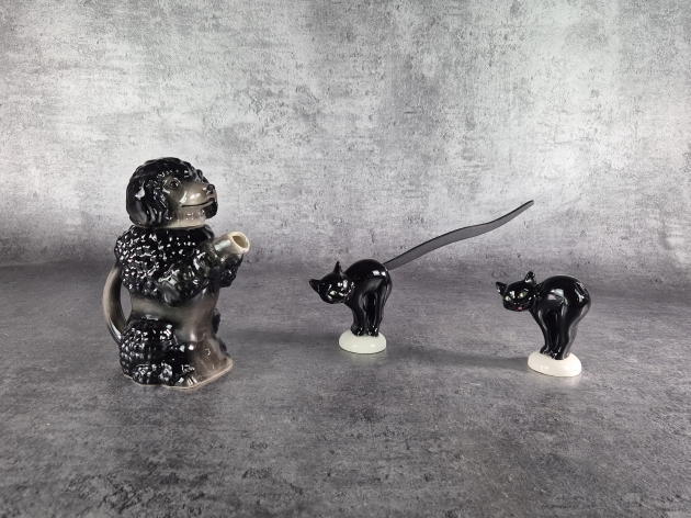 76.Hundkanna, Pudel, Tyskland, och två katter, Goebel.