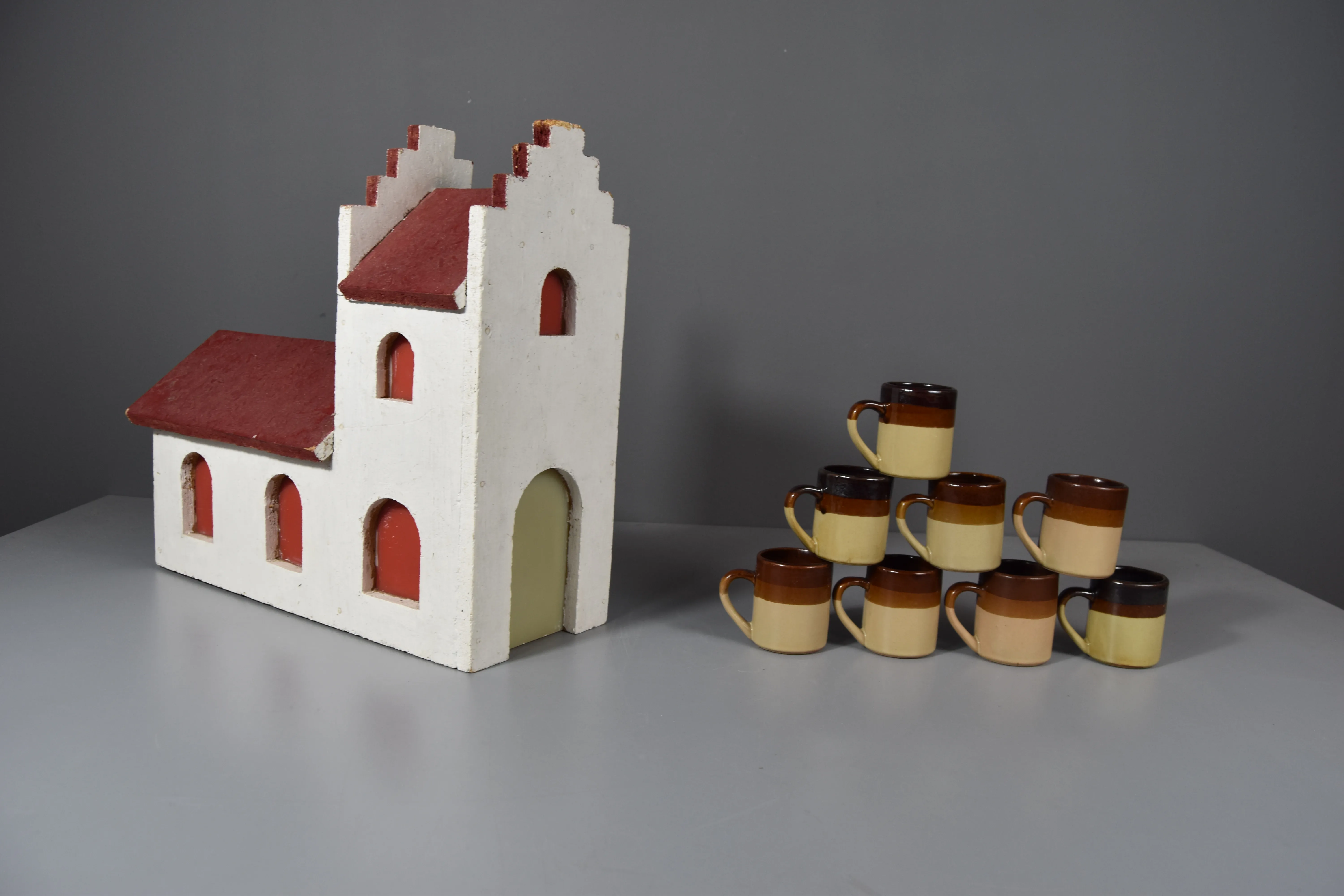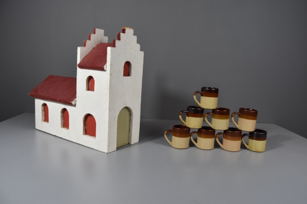 Julkyrka: Höjd 35cm Bredd 38cm. Ej funktionstestad. Bruksslitage. Glöggmuggar. 1st med spricka.