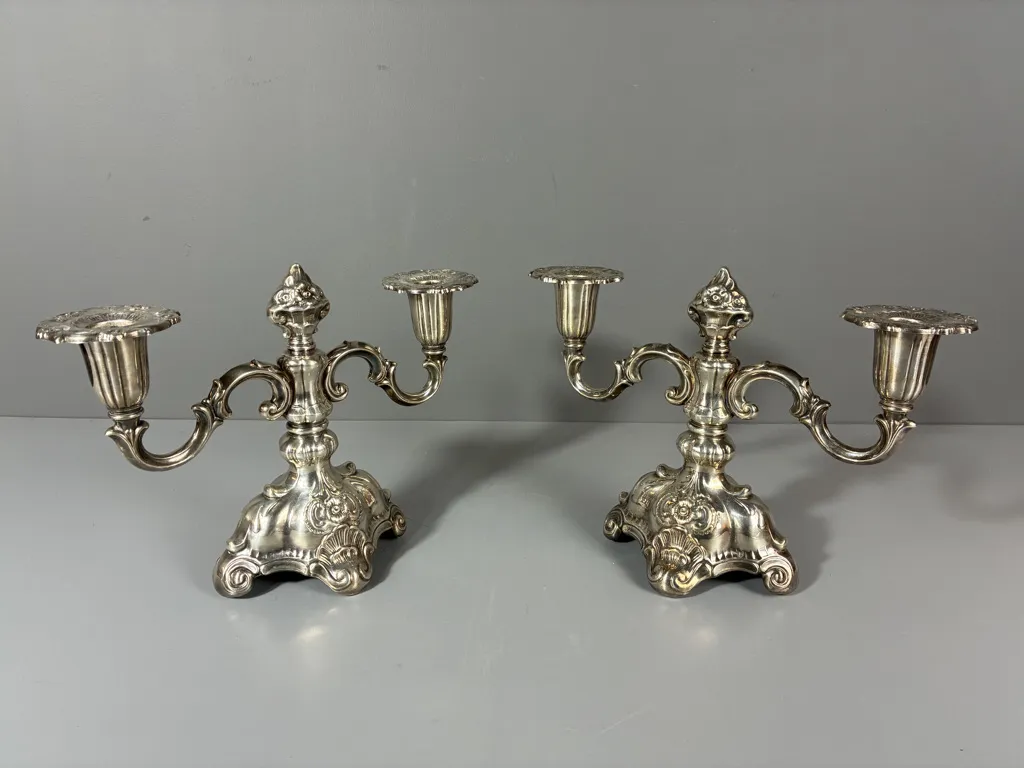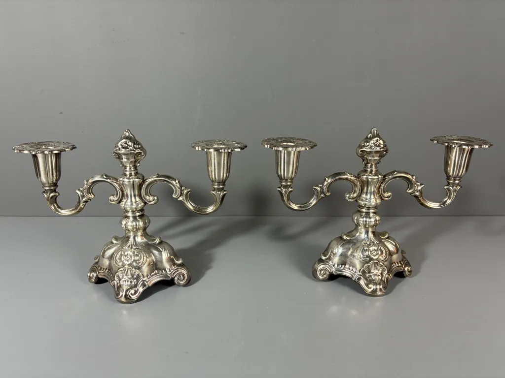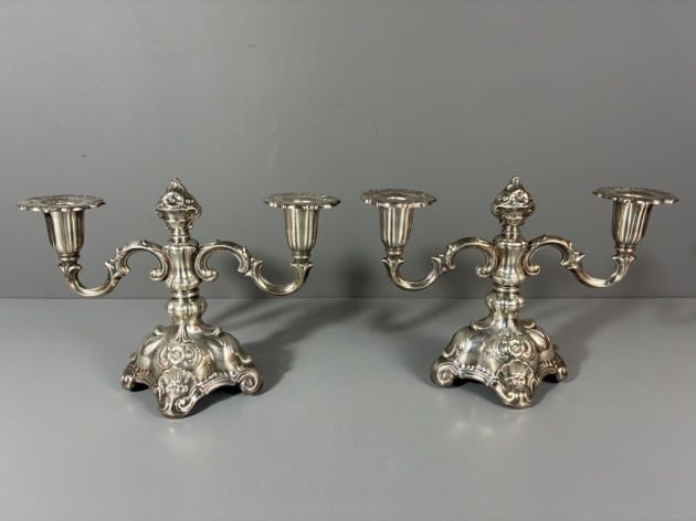 Ett par i rokokostil i nysilver. Höjd:22cm, Bredd:29cm